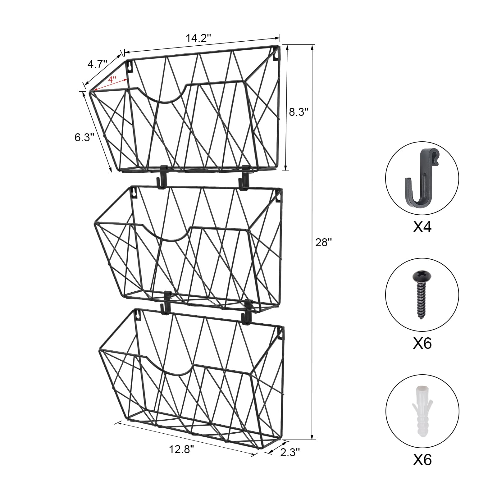 Syeeiex Gross Zeitschriftenhalter Wand 3 Stück, Zeitungshalter Wand Metall für A4 Post Brief, Prospekthalter Wand & Schreibtisch im Küche Wohnzimmer Büro Badezimmer, Zeitungsständer Wand - Schwarz