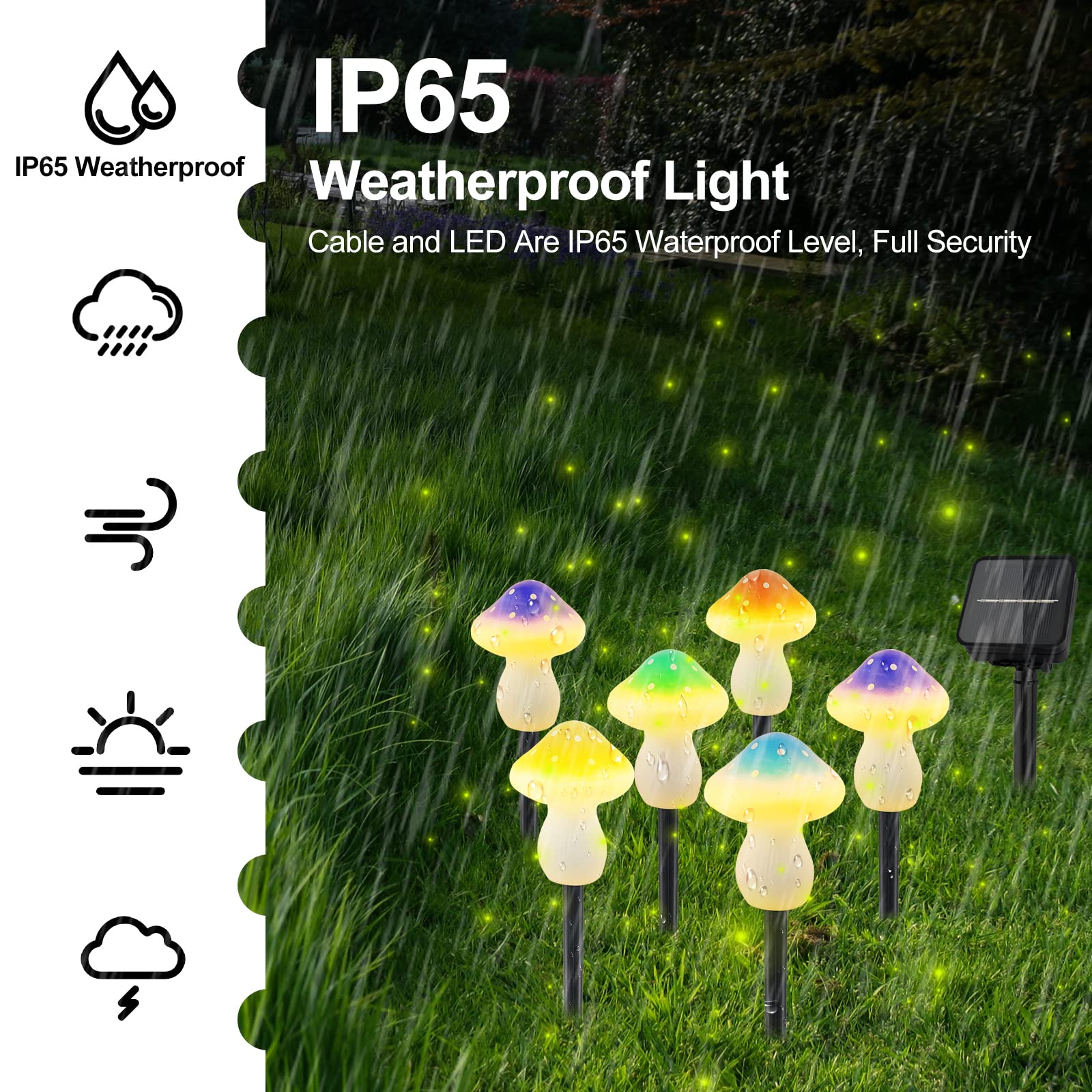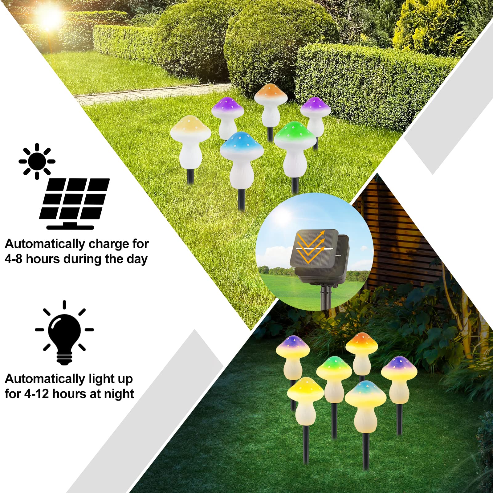T-SUN 6 LED Solar Pilze Lichterkette Aussen Solarlampen für Aussen Garten Pilz Lampe Gartendeko für Draussen IP65 Wasserdicht, 8 Lichtmodi für Gärten, Innenhöfe, Rasenflächen, Terrassen Warmweiss