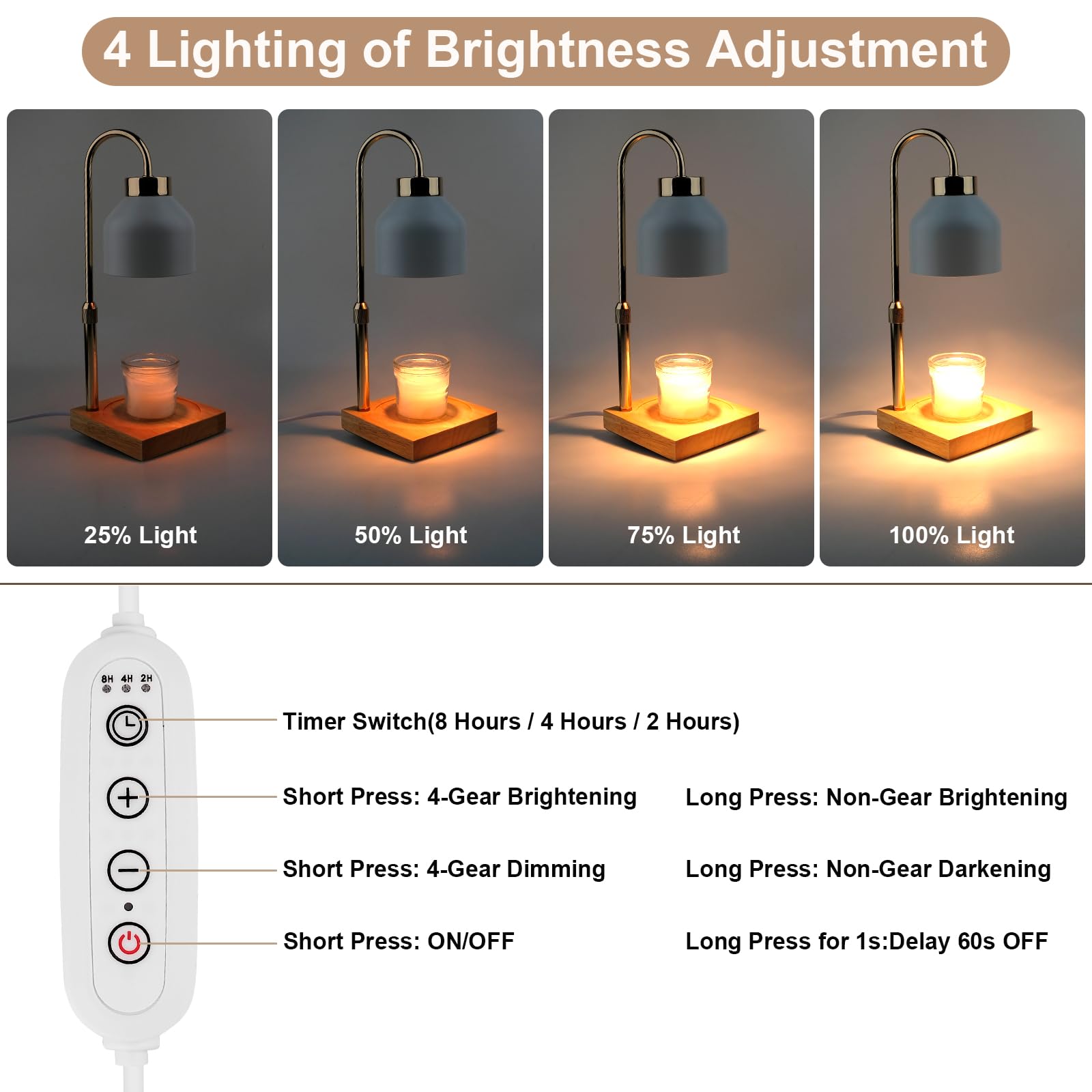- ????【Elektrischer Duftlampe mit Timer】Dieser Kerzenwachswärmer hat eine Zeitschaltfunktion. Drei Timer-Optionen für 2, 4, und 8 Stunden machen den Kerzenwärmer einfach zu schliessen. Keine Sorgen mehr über das Vergessen, die brennenden Kerzen auszublasen, mehr sicher zu verwenden.❗Berühren Sie den Lampenschirm nicht mit Ihren Händen während des Gebrauchs oder nach dem Ausschalten.