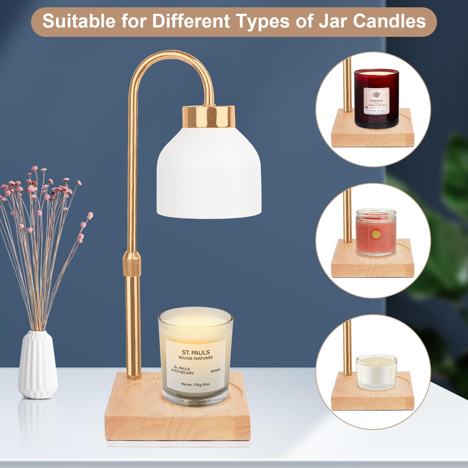 - ????【Höhenanpassung & Passend für alle Kerzengrössen】Der Kerzenwärmerlampe ist mit mehreren Kerzen unterschiedlicher Höhe kompatibel. Die Höhe von der Basis bis zum Lampenschirm ist einstellbar, es kann Glaskerzen bis zu 7 Zoll in der Höhe halten. Mit hochwertigem Holzsockel, Anti-Rutsch-Pads unter dem Sockel, um seine Stabilität zu gewährleisten.