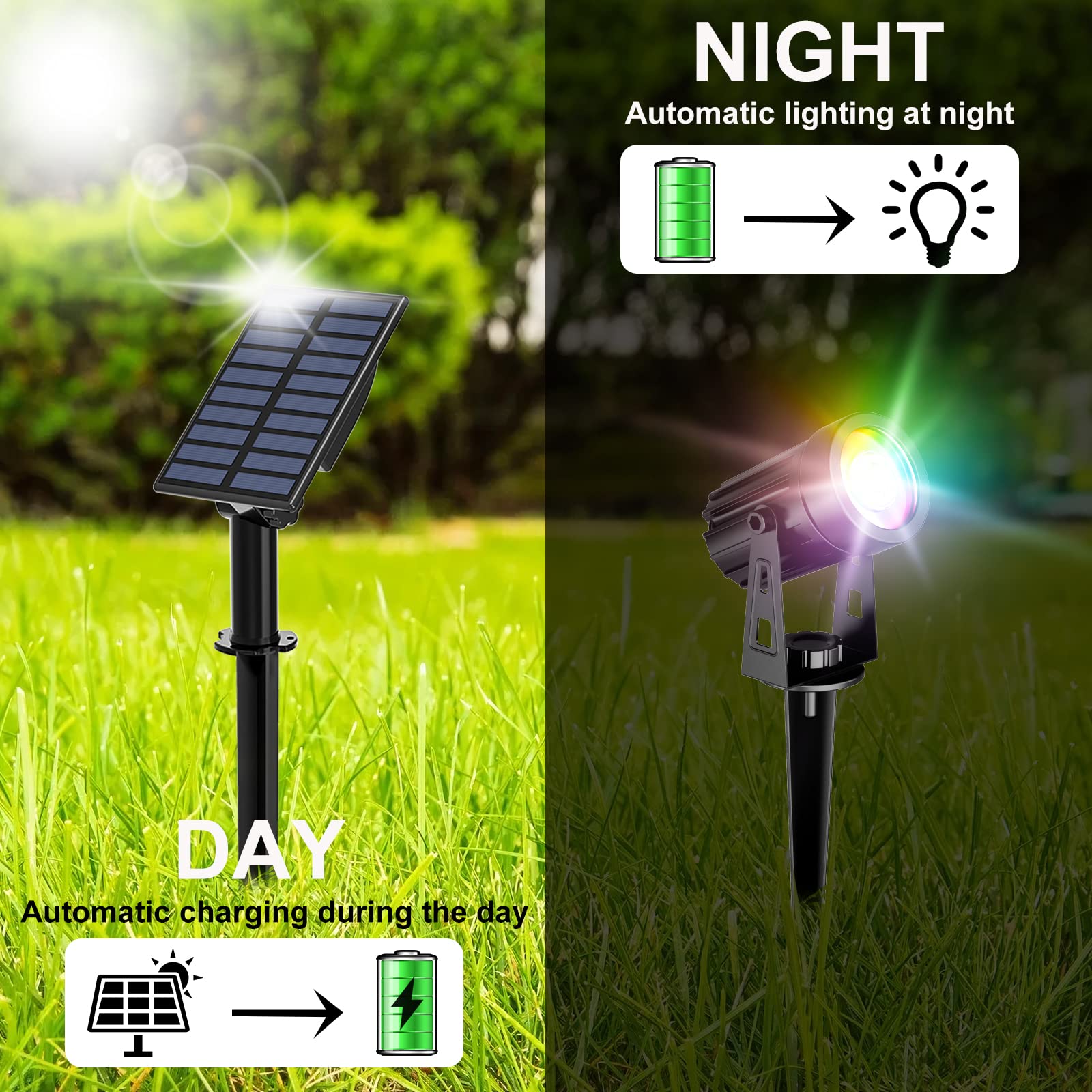 T-SUN Solar Gartenleuchten, 2-in-1 Wasserdicht Drahtlos Outdoor Wandleuchte, 2 Beleuchtungsmodi, Sicherheitsbeleuchtung für Hof, Rasen, Wege, Auffahrt, Terrasse(RGB)