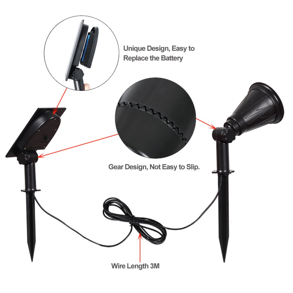 T-SUN 7 LED Solarstrahler Solarleuchten, 2-in-1 Wasserdicht Solar Gartenleuchten Solarlampe Aussen Wandleuchte mit 3M Kabel, 7 Farbwechsel Gartenbeleuchtung(Lange Drücken Sie 3s, um einzuschalten)