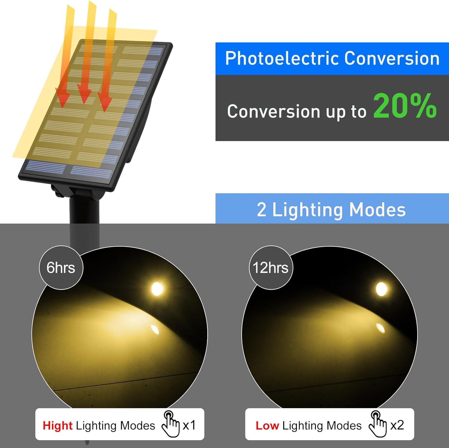T-SUN Solar Gartenleuchte, 2 Stück Solarstrahler Solarlampen für garten, IP65 Wasserdicht LED Solarlampe mit 2 Helligkeitsstufe, 3 Meter Kabe,Auto-on/off für Bäume,Sträucher,Gartenweg(3000K Warmweiss)