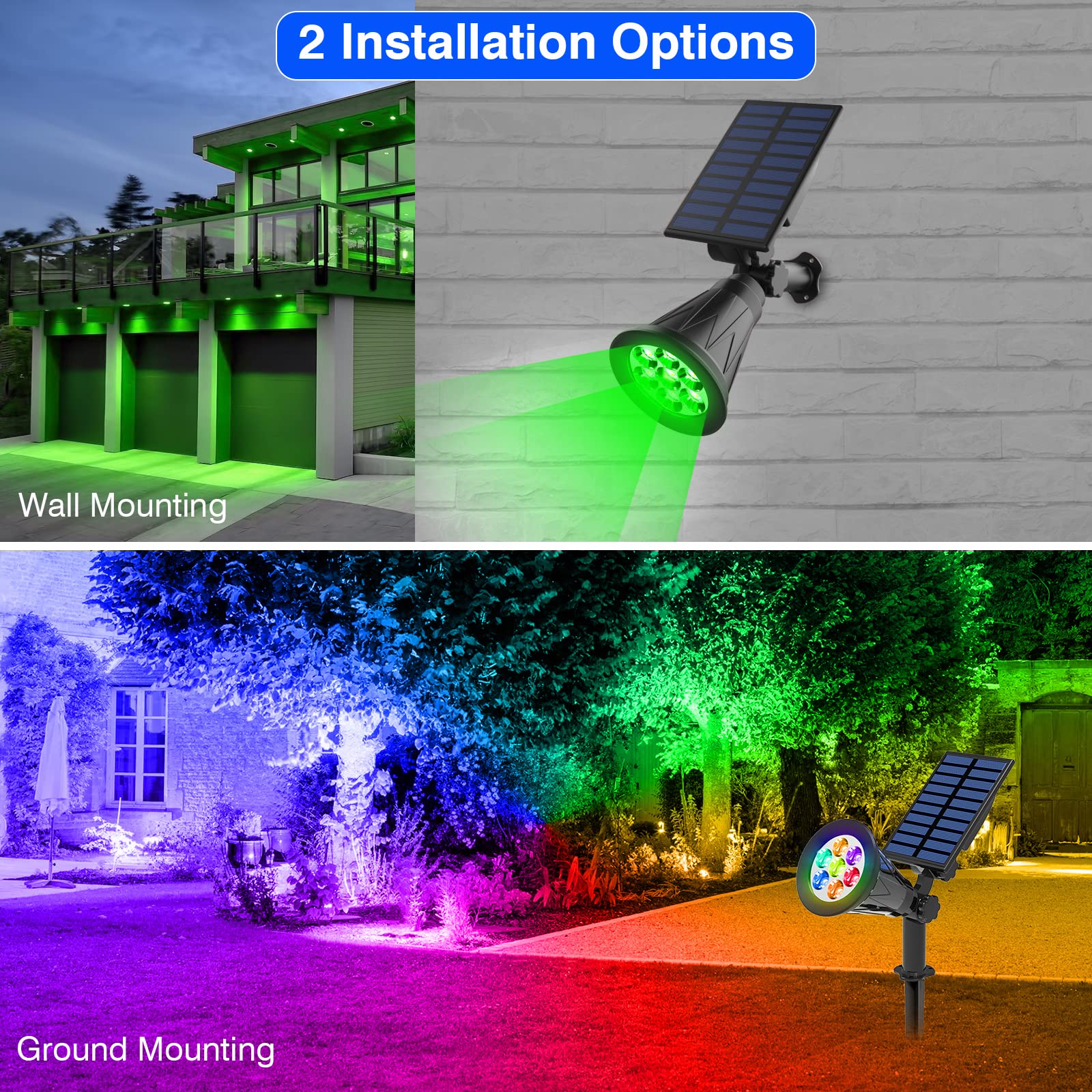 Solarleuchte Garten, T-SUN 2 Stück 7LED Solarstrahler Solar Gartenleuchte Aussen mit 2-in-1 Wasserdicht Drahtlos, 7 Farbwechsel, 2 Einstellmodi, Auto-on/off(Drücken Sie zum Einschalten 3 Sekunden lang)