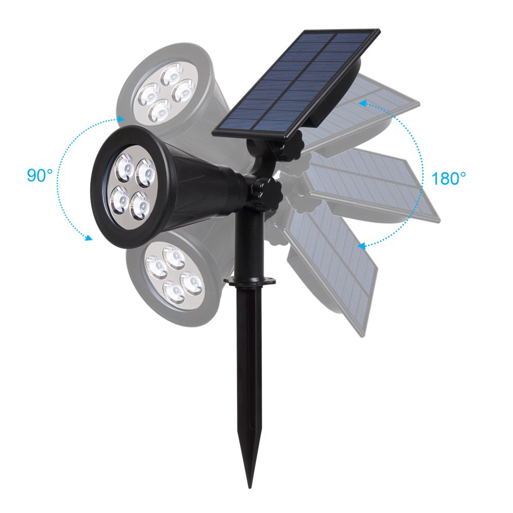 T-SUN Solarleuchte Garten, 4LED Solarstrahler Solar Gartenleuchte Aussen mit 2-in1 Gartenbeleuchtung Wasserdicht Drahtlos, 2 Helligkeitsstufe für Hof, Rasen,Terrasse.(Natürliches Weiss 4000K)