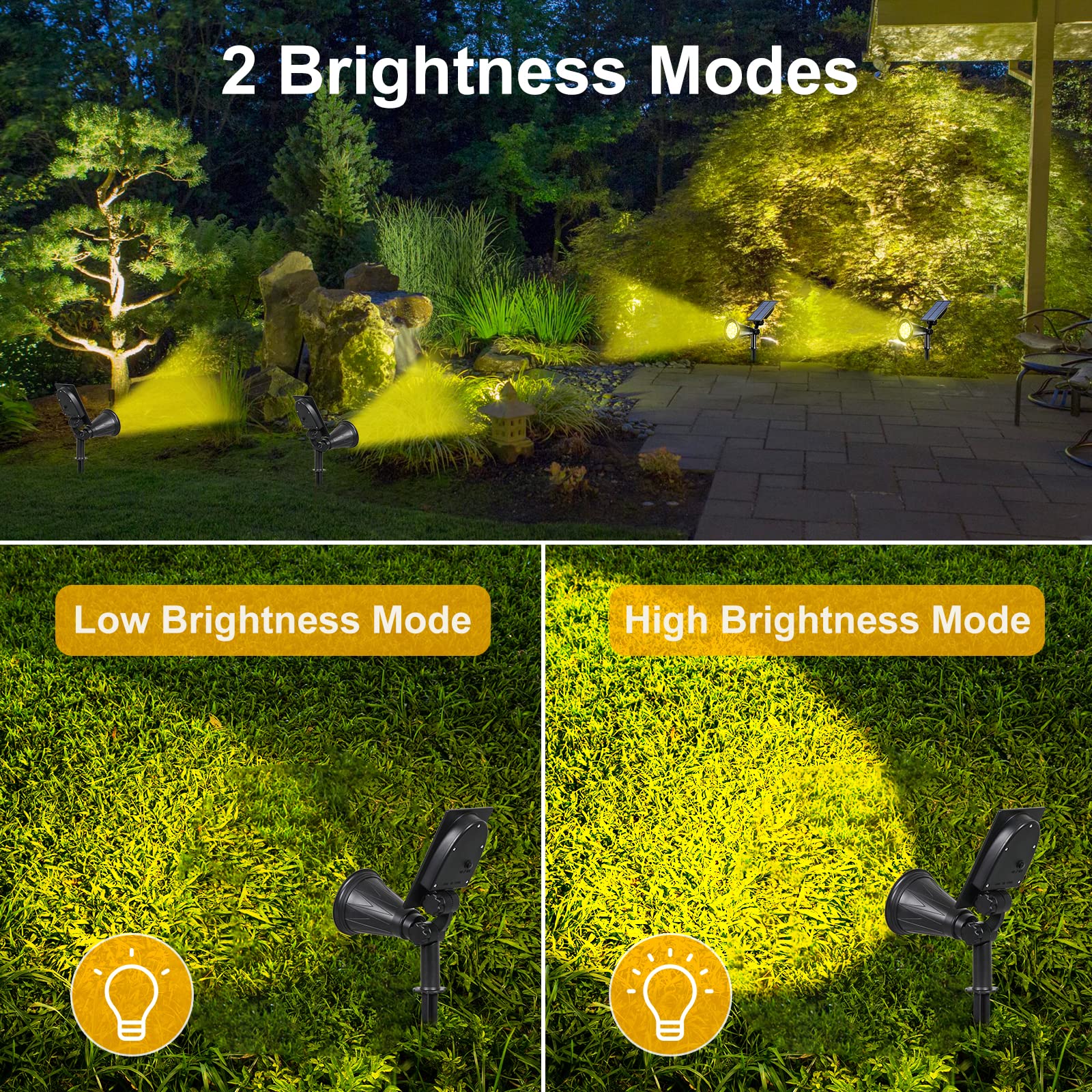 T-SUN 2 Stücke Garten Solarleuchten, Outdoor Wandleuchte, Helle Garten Solar Licht, 2 Beleuchtungsmodi, Wasserdicht, Sicherheitsbeleuchtung, Grosses Aussenlicht für Garte, Hof. (2700K)