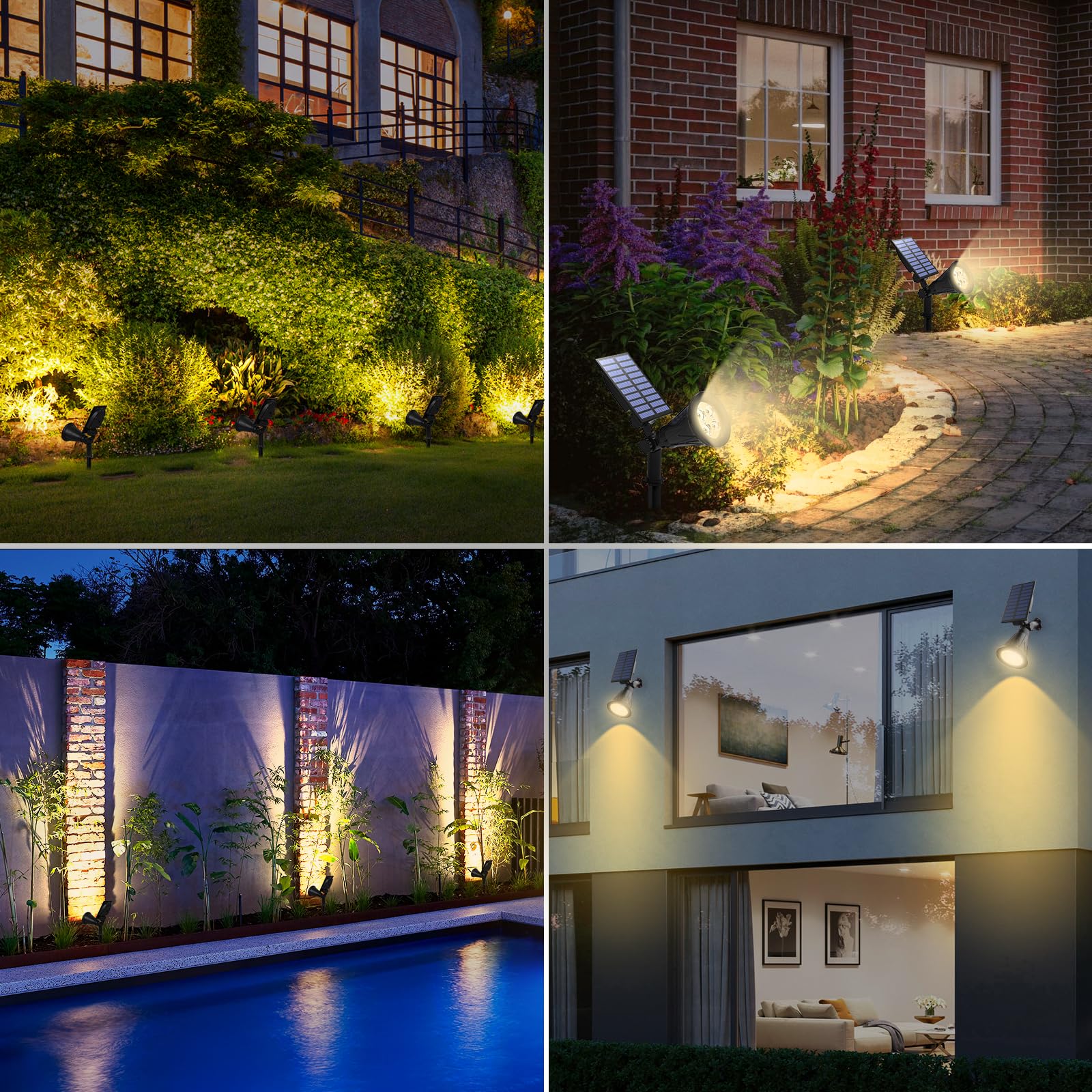 T-SUN (Upgraded 250 Lumens 2 Stück LED Solarleuchten, 2-in-1 Wasserdicht Drahtlos Solarbetriebene Gartenleuchten für Hof, Wand, Garten, Rasen, Wege, Auffahrt, Terrasse (4000K)