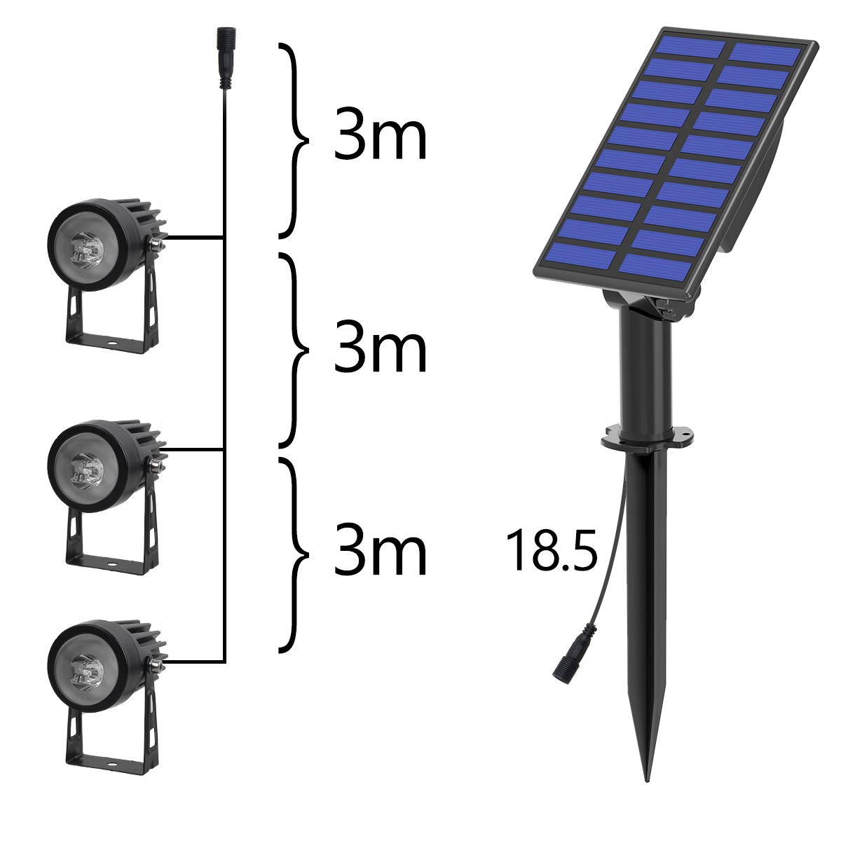 Einstellbarer Winkel: 270 Grad (Solarpanel); 270 Grad (Solarscheinwerfer)