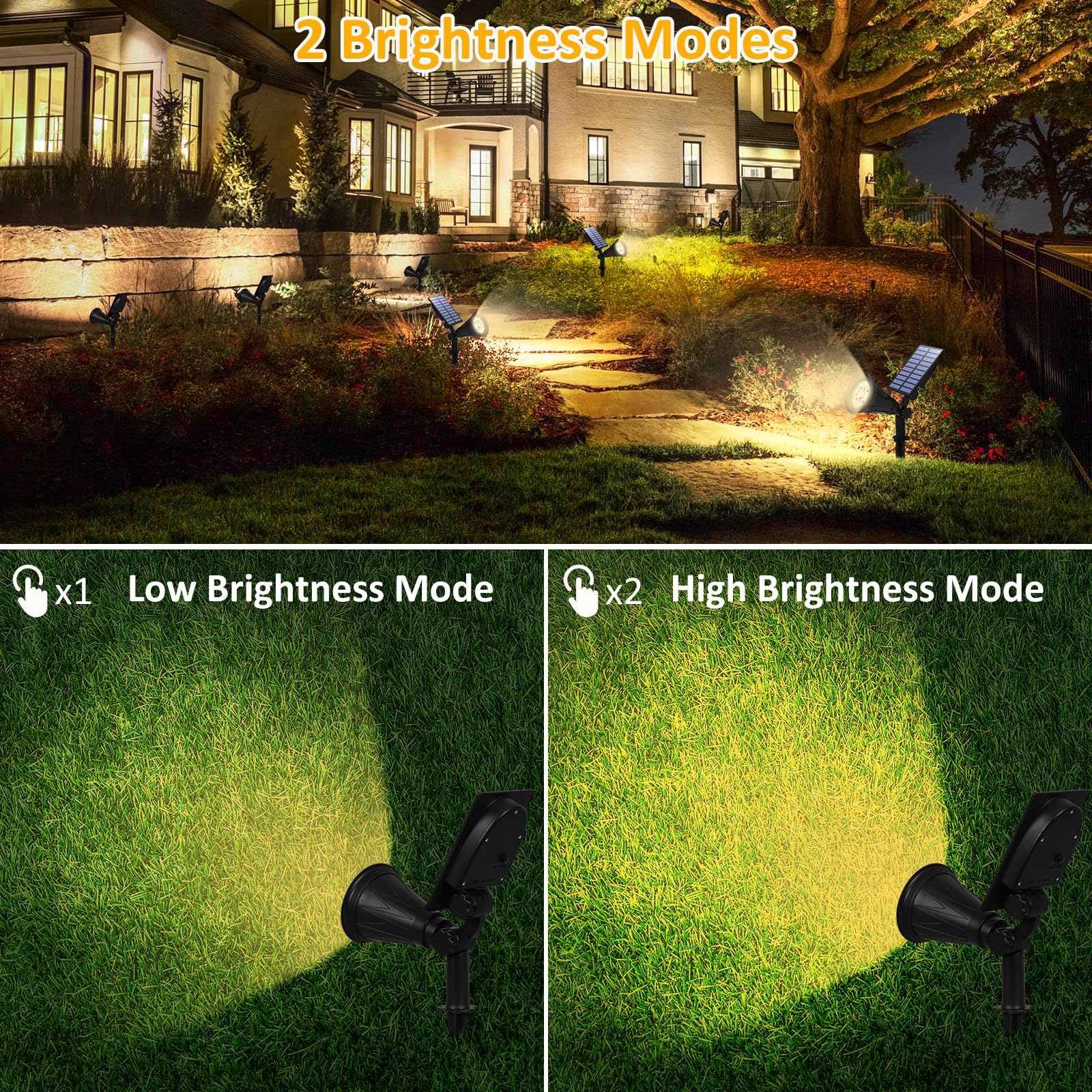 T-SUN Upgraded Solarlampen für ausse Garten,2 Stück Solarstrahler Gartenleuchte IP65 Wasserdicht Drahtlos 4000K Warmweiss Helle Solarbetriebene Gartenleuchten für Hof, Terrasse