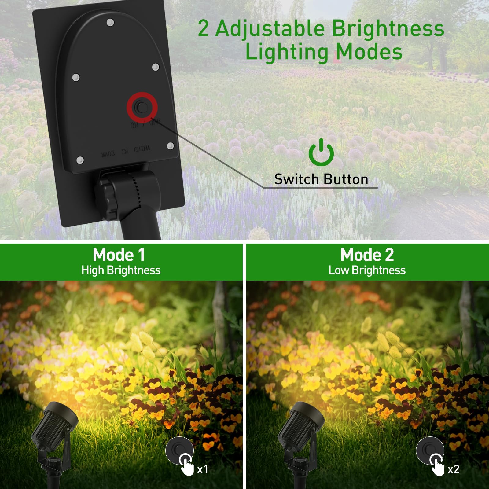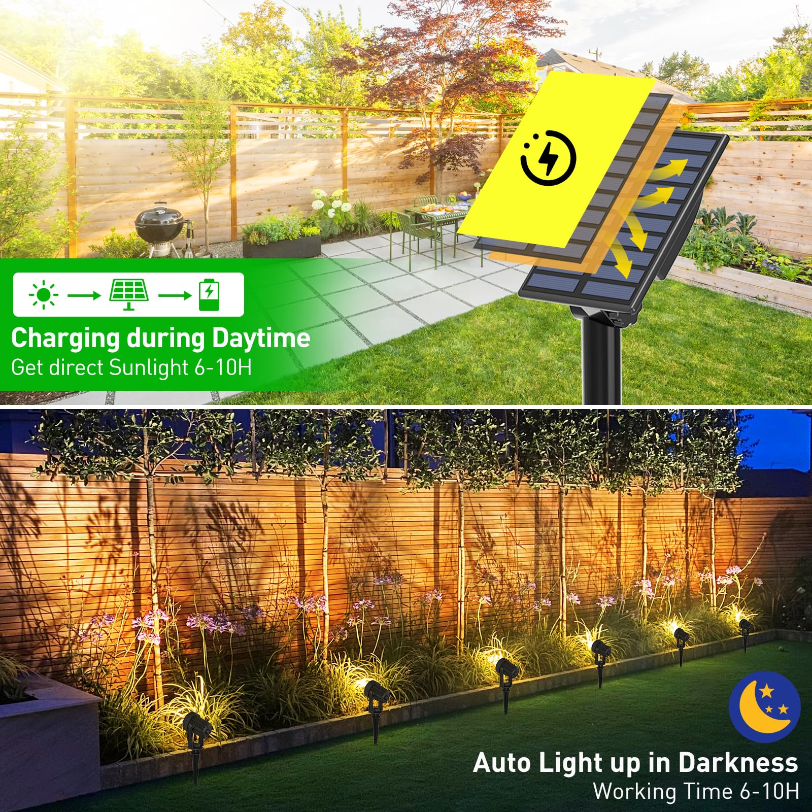 T-SUNUS Solarstrahler für den Aussenbereich, Garten, mit 2 Beleuchtungsmodi, wasserdicht, IP65, Solarprojektor, für den Aussenbereich, für Garten, Hof, Allee, 3000 K