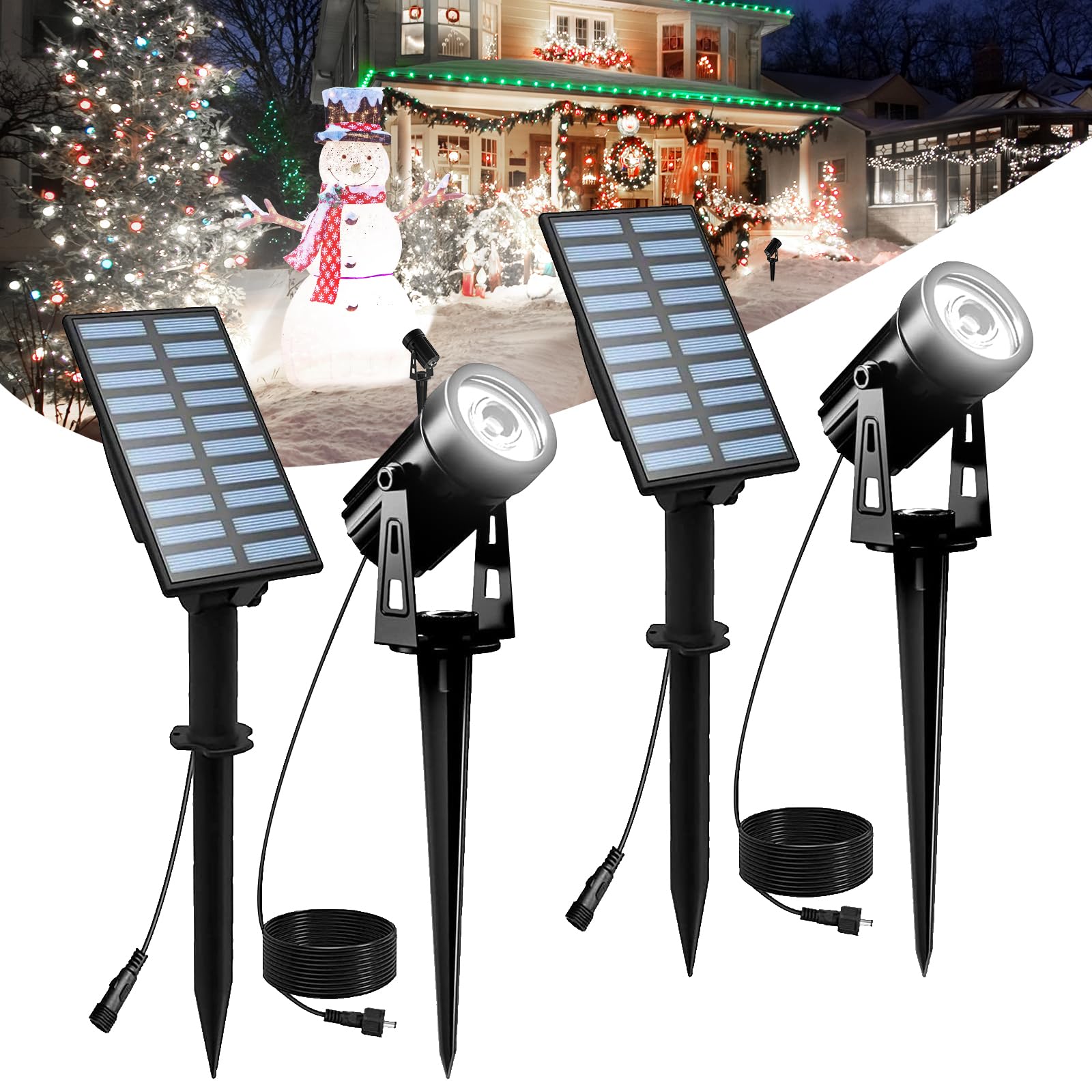 T-SUNUS Solarstrahler für den Aussenbereich, Garten, Solarlicht, für den Aussenbereich, 6000 K, mit 2 Beleuchtungsmodi, wasserdicht IP65, Auto On/Off, für Allee, Garten, Garage, 2 Stück