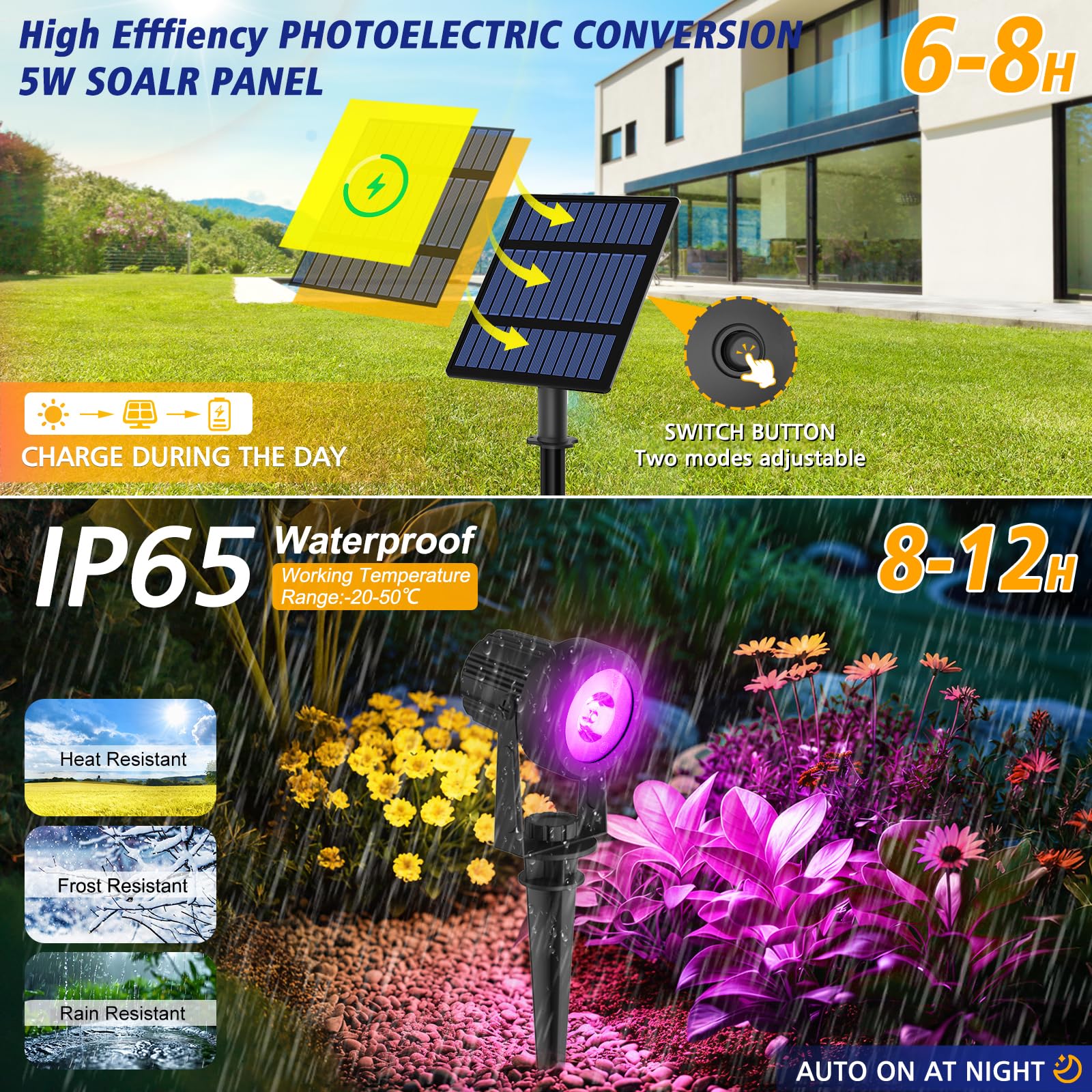 T-SUNUS Gartenstrahler Solar RGB, Solar Gartenleuchte RGB Solarlampen für Aussen mehrfarbig mit 6 Farbwechsel IP65 wasserdicht Auto ON/OFF für Garten Garage Eingang Zäune Baum