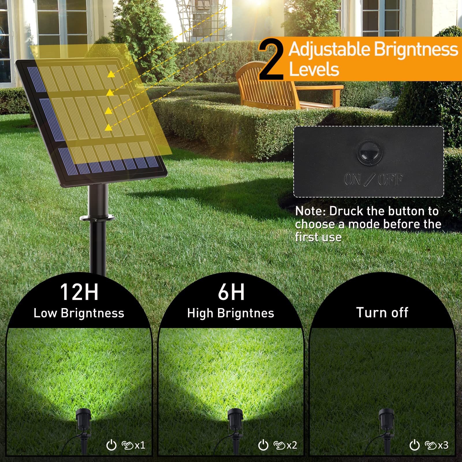 T-SUNUS Gartenstrahler Solar Aussen, Solarlampen für Aussen Garten Kaltweiss IP65 Wasserdicht, 2 Helligkeitsmodi, Solar Gartenleuchte Auto ON/OFF für Hof Auffahrt Gehweg