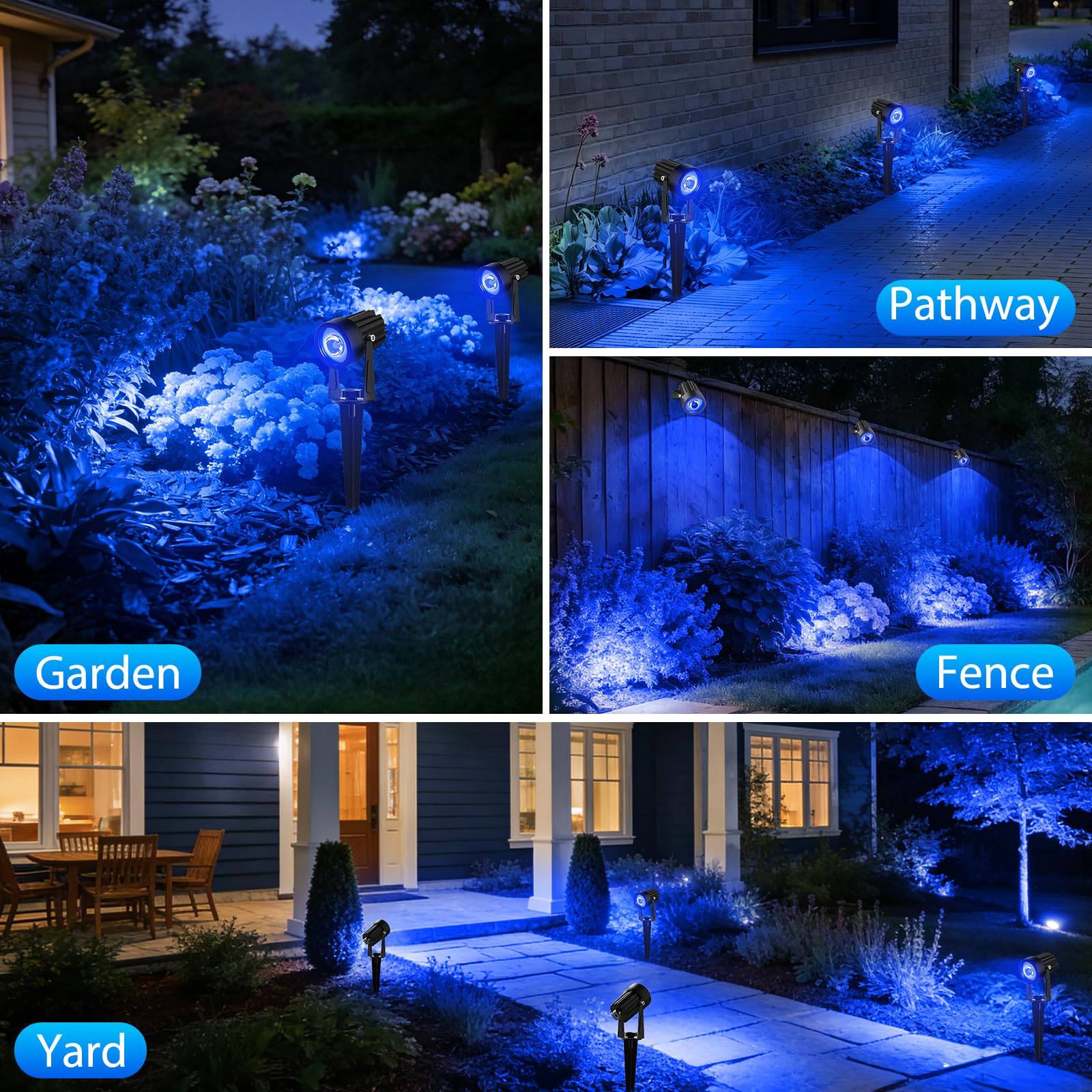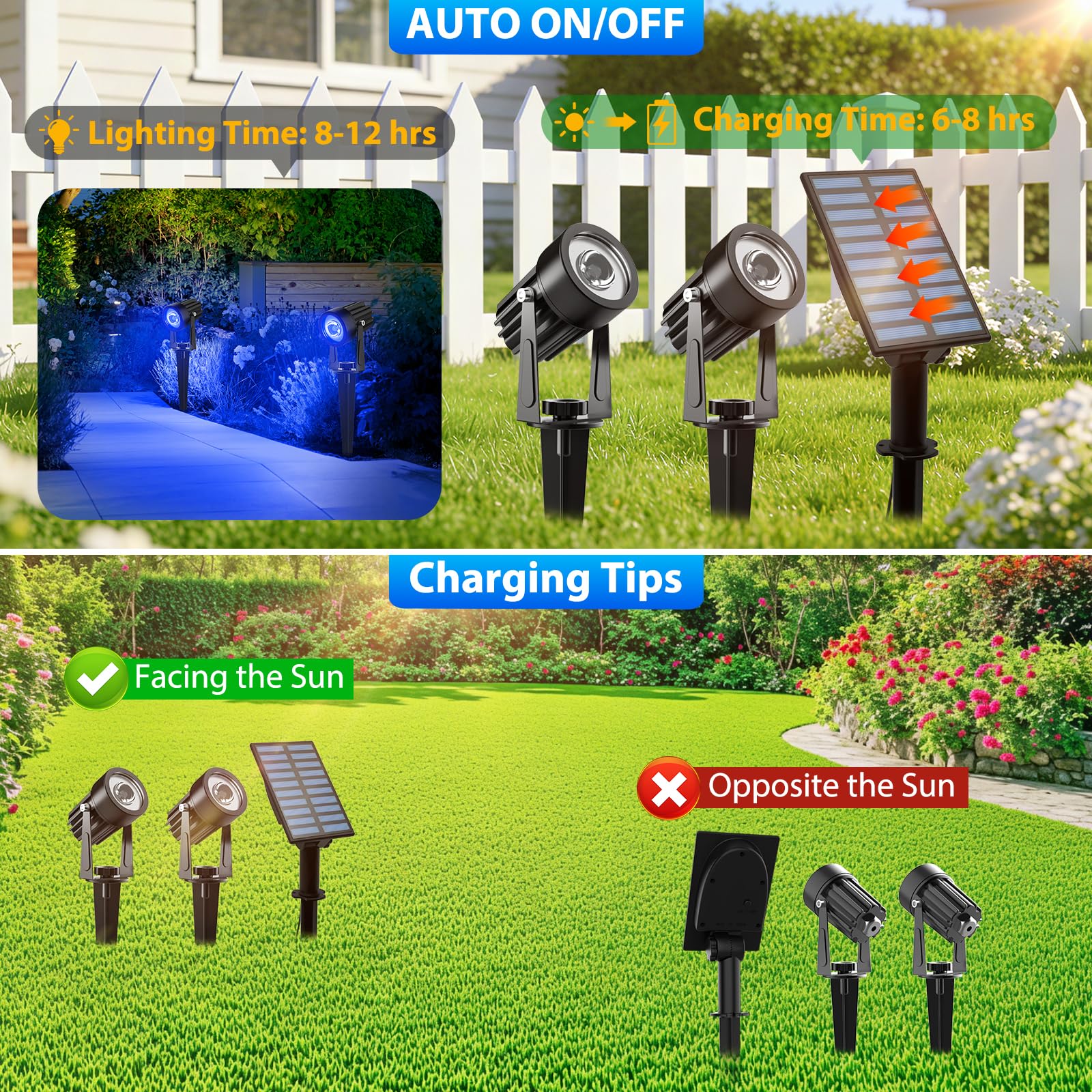 T-SUNUS Solarlampen für Aussen Garten, Gartenleuchten Solar Aussen Auto ON/OFF IP65 Wasserdicht Solarstrahler für Aussen Garten Gartenstrahler Solar für Baum Terrasse Hof Blau