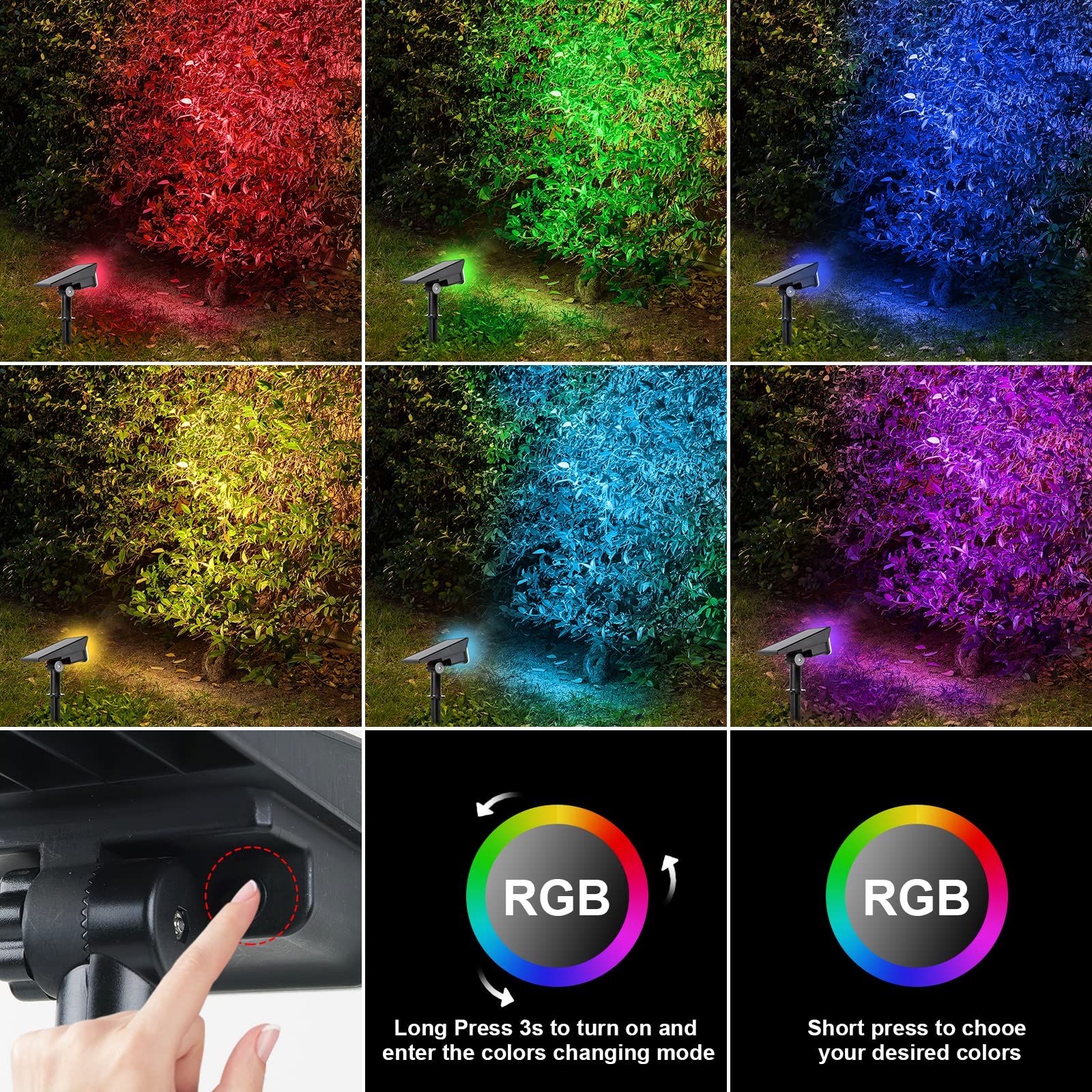 T-SUNUS Gartenstrahler Solar Aussen mehrfarbig, Solarstrahler für Aussen 10 LED Solarlampen für aussen 6 Farbwechsel Solar Gartenleuchte IP65 Wasserdicht für Bäume Sträucher Gartenweg 4 Stück