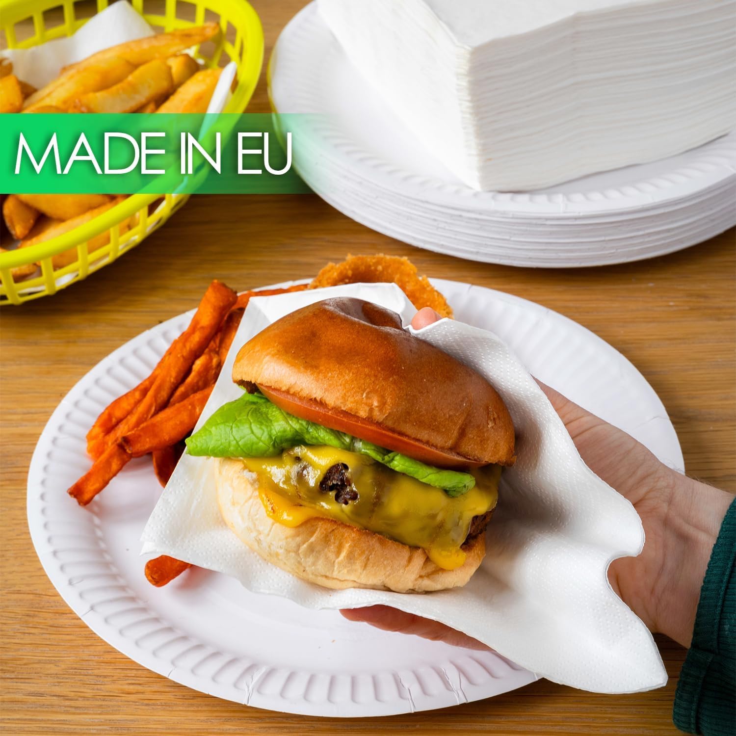 Willkommen bei Table Kind, wo unser Engagement über die blosse Bequemlichkeit hinausgeht – es geht darum, für unseren Planeten und einander zu sorgen. Wir sind stolz, Ihnen unsere umweltfreundlichen Pappteller vorstellen zu können, die speziell für Ihr Wohlbefinden und die Umwelt entwickelt wurden. In jeder Packung mit 150 Tellern finden Sie die perfekte Balance aus Nachhaltigkeit und Praktikabilität, wobei jeder Teller eine angenehme Grösse von 22 cm (8,66 Zoll) hat. Verabschieden Sie sich von Umweltkompromissen – unsere Teller sind vollständig heimkompostierbar, FSC-zertifiziert und recycelbar, sodass Sie Ihre Mahlzeit ohne schlechtes Gewissen geniessen können. Ganz gleich, ob es sich um ein Familientreffen, einen besonderen Anlass oder einfach nur um den täglichen Gebrauch zu Hause handelt, unser vielseitiges 150er-Pack sorgt dafür, dass Sie immer vorbereitet sind. Unsere Teller werden mit Sorgfalt in der EU hergestellt und verkörpern den Geist des verantwortungsvollen Essens. Machen Sie gemeinsam mit Table Kind einen Unterschied – denn jede noch so kleine Entscheidung trägt zu einer besseren, grüneren Zukunft für uns alle bei.
