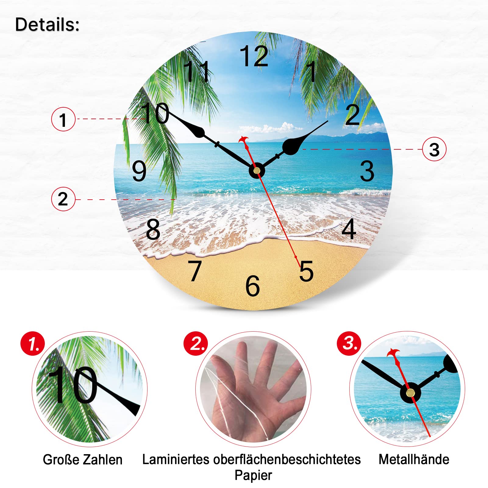 Unsere Ozean und Strandwanduhren verwandeln Ihr Zuhause in ein Resort und Sie können alle Harmonie, Ruhe und Gelassenheit geniessen, die das Meer in jeden Raum Ihres Hauses bringt, den Alltagsstress abbauen und Kraft sammeln.Beachtung: