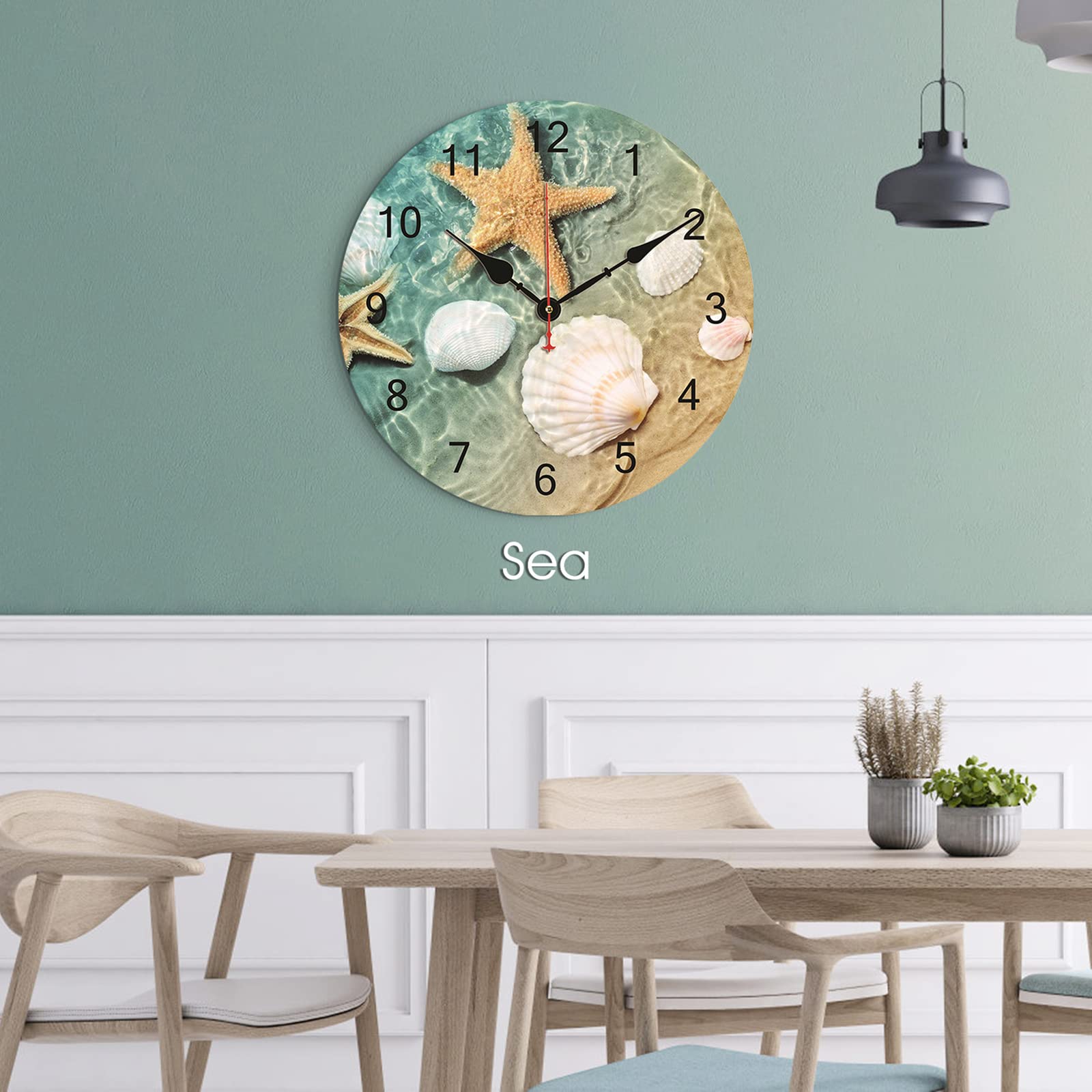 TAHEAT 30 cm Wanduhr Maritime Muschel Seestern, Leise Ohne Tickgeräusche Batteriebetrieben Uhren, Schone Dekorativ Wanduhren für Schlafzimmer/Wohnzimmer/Küche/Badezimmer