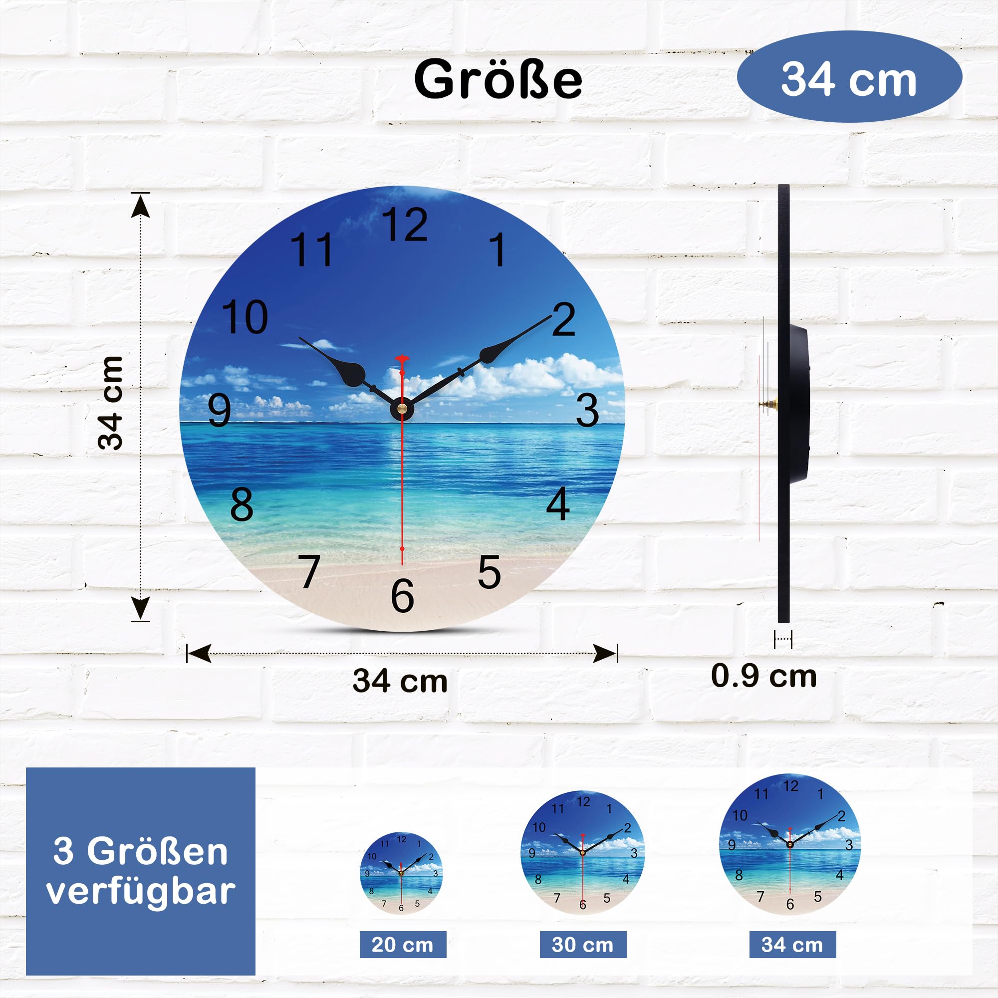 Sie helfen Ihnen, ein Strandinterieur in Ihrem Haus zu schaffen. Sie sind vielleicht nicht immer am entspannenden tropischen Strand, aber unsere Wanduhren können Sie dorthin bringen. Bitte beachten Sie:
