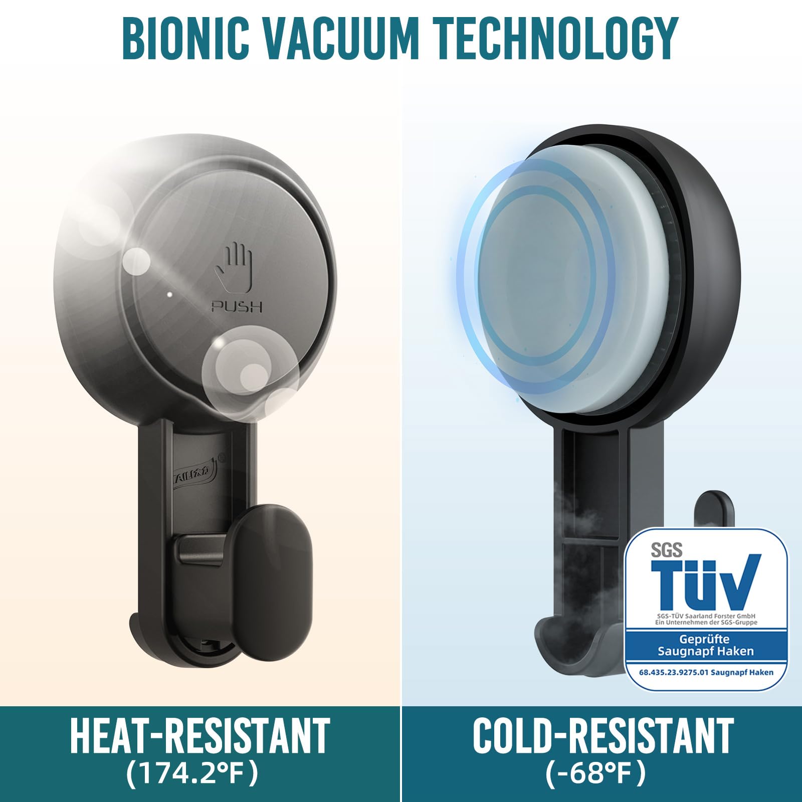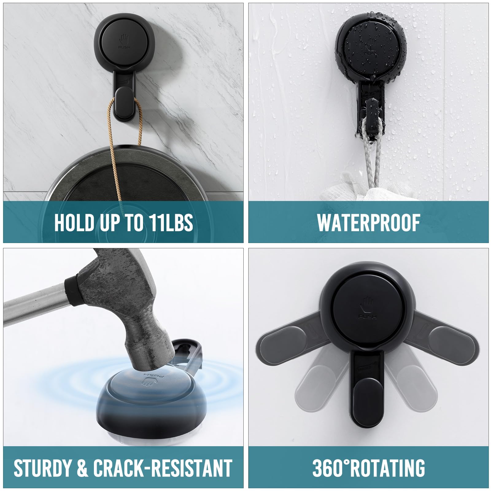 TAILI Saugnäpf Haken Handtuchhalter Küche Ohne Bohren Wiederverwendbar Wasserdicht 360° Drehbare Duschhaken, Handtuchaufhänger Küche Saugnapf Haken für Bad, Wand, Bademäntel, Mantel, 4 Pack Schwarz