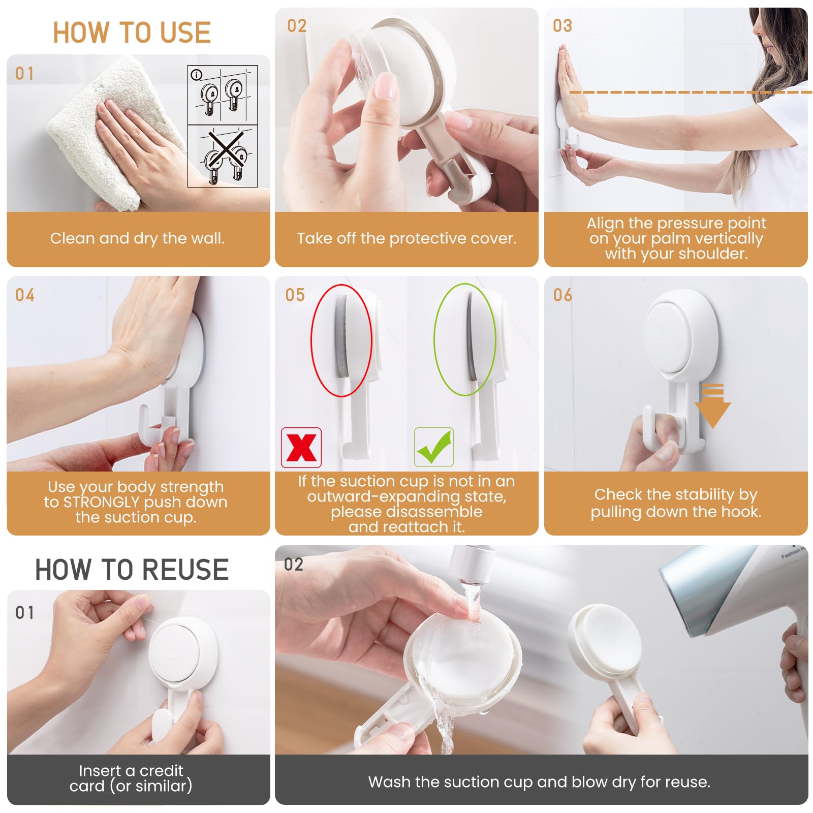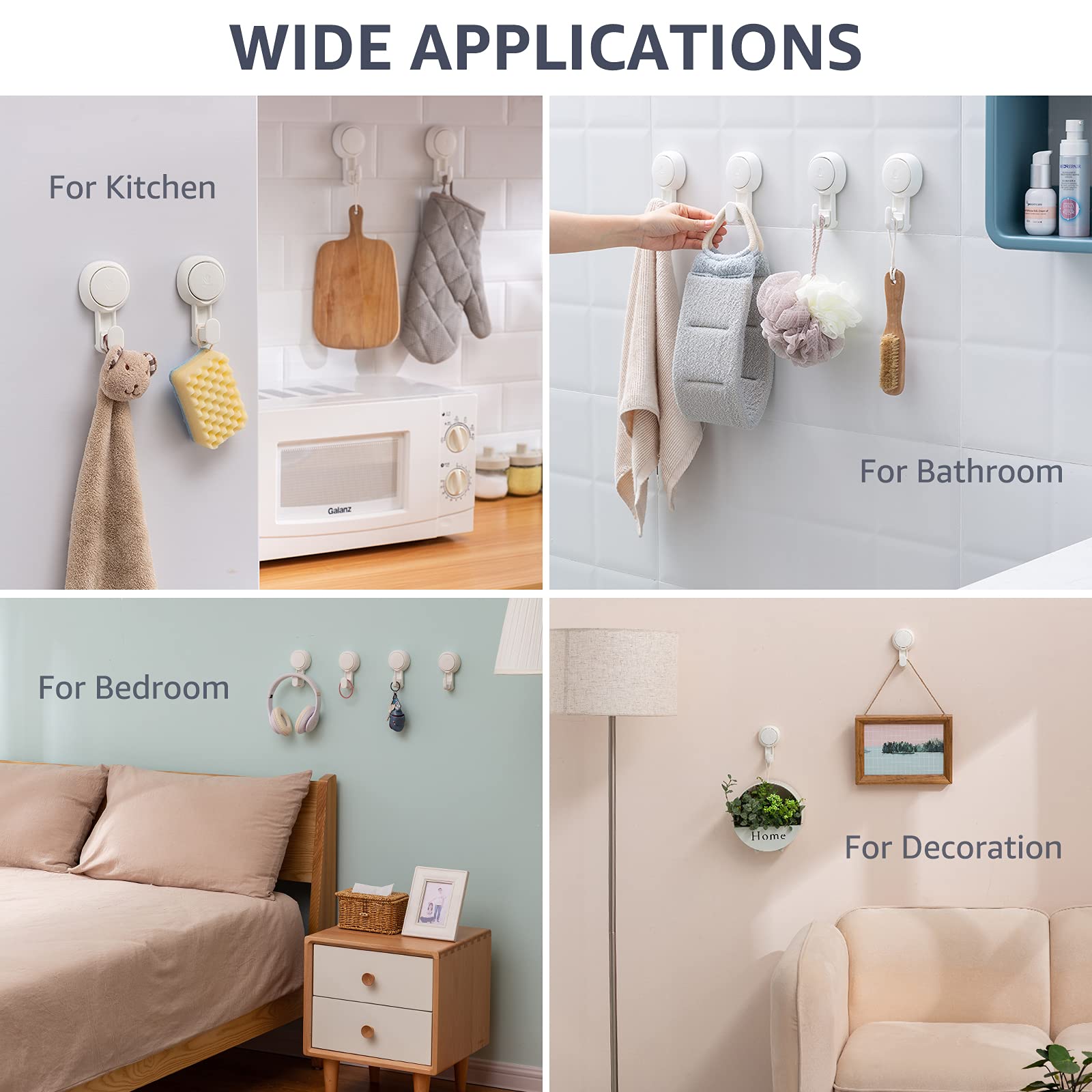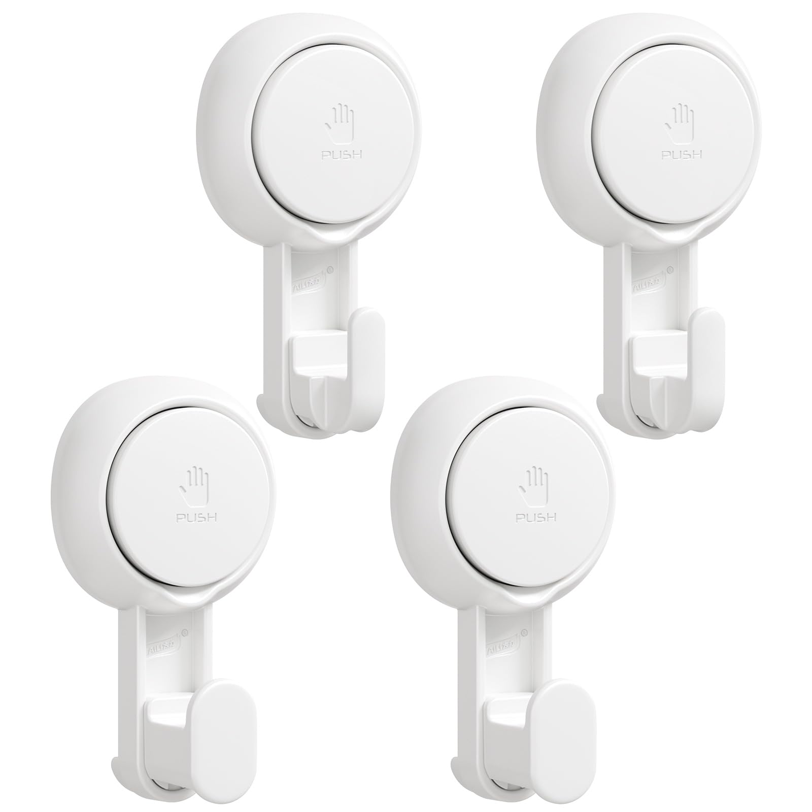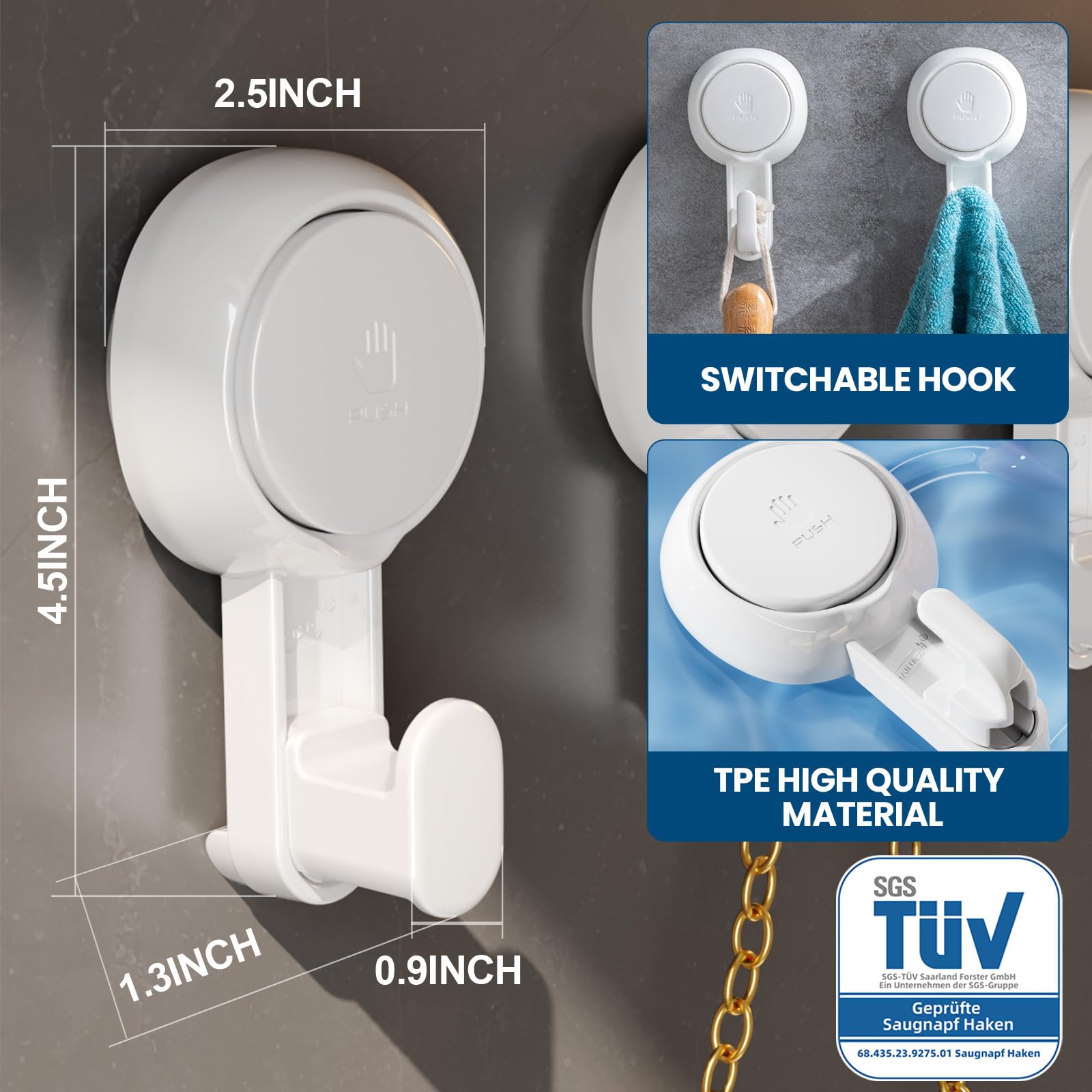 TAILI Saugnäpf Haken Handtuchhalter Küche Ohne Bohren Wiederverwendbar Wasserdicht 360° Drehbare Duschhaken, Handtuchaufhänger Küche Saugnapf Haken für Bad, Wand, Bademäntel, Mantel, 4 Pack Weiss
