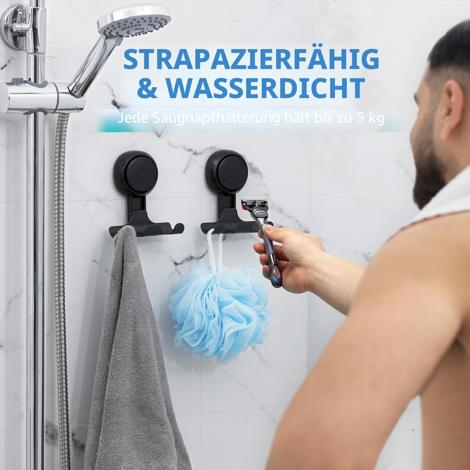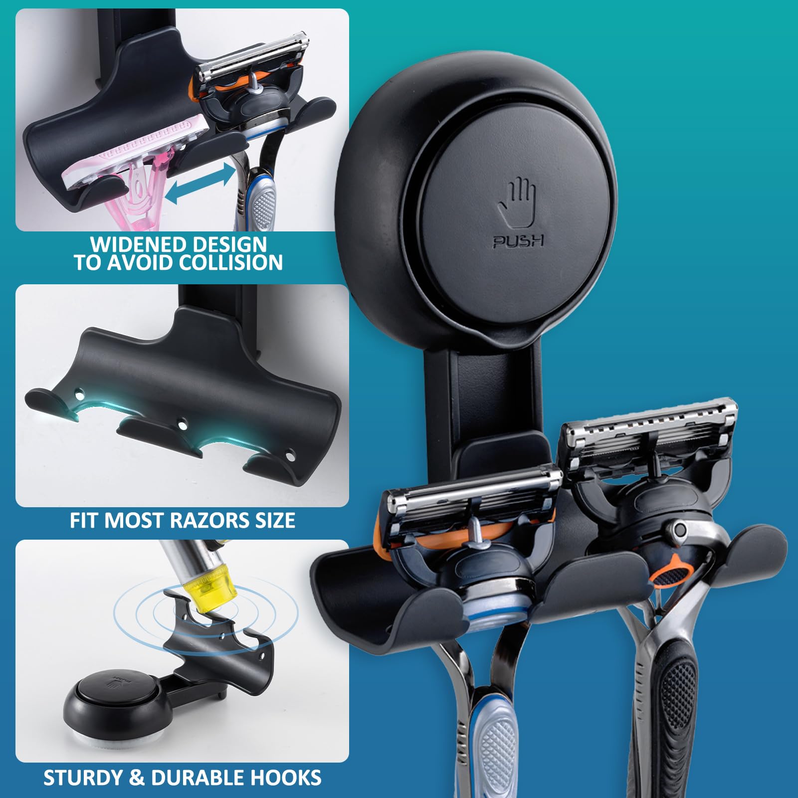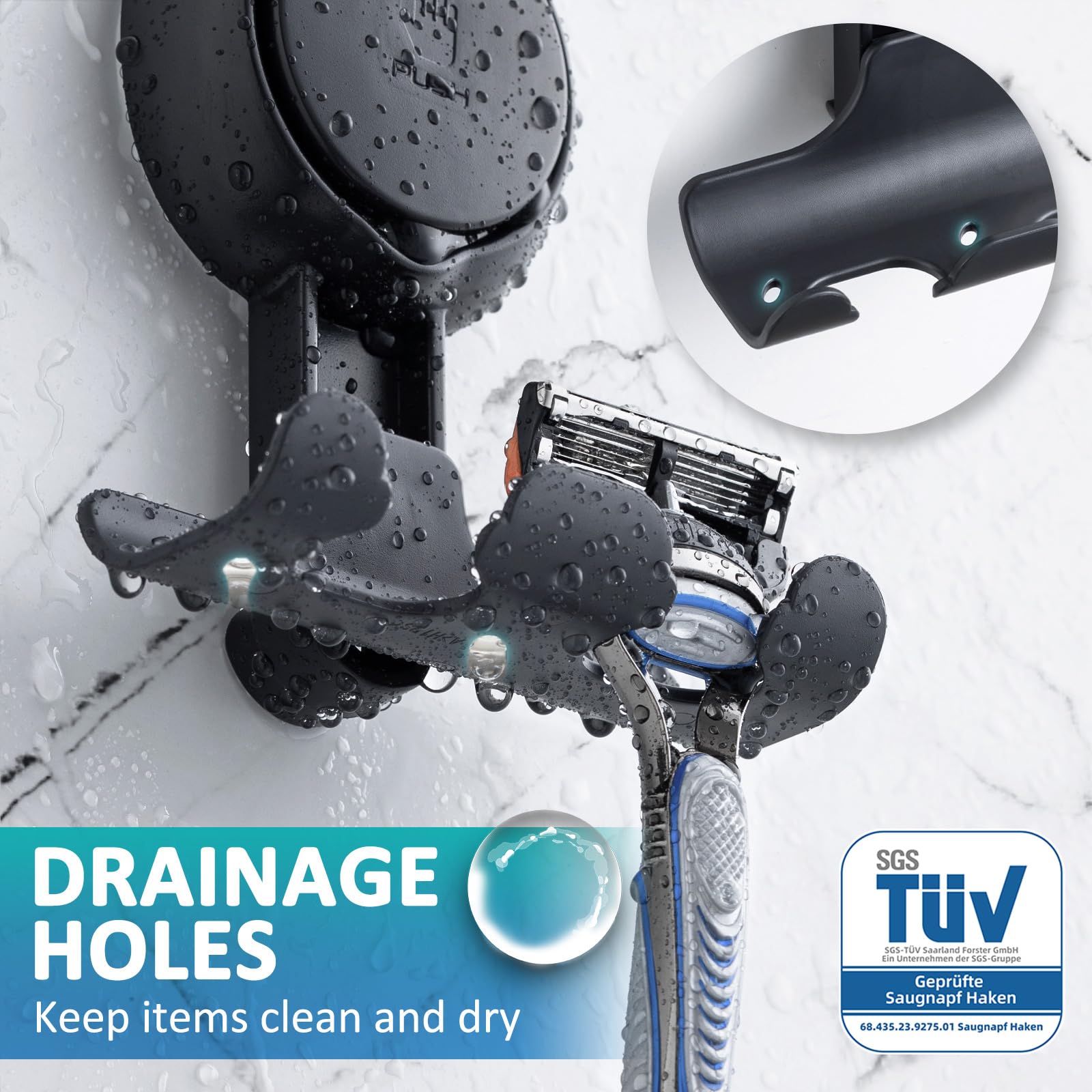 TAILI Dusche Rasiermesser Halter Saugnapf Haken 2 Pack Vakuum Saug Rasiermesser Aufhänger für Dusche Wand, Abnehmbar Saug Tür Haken für Badezimmer Handtuch Schwamm Rasierer Halterung für Bad
