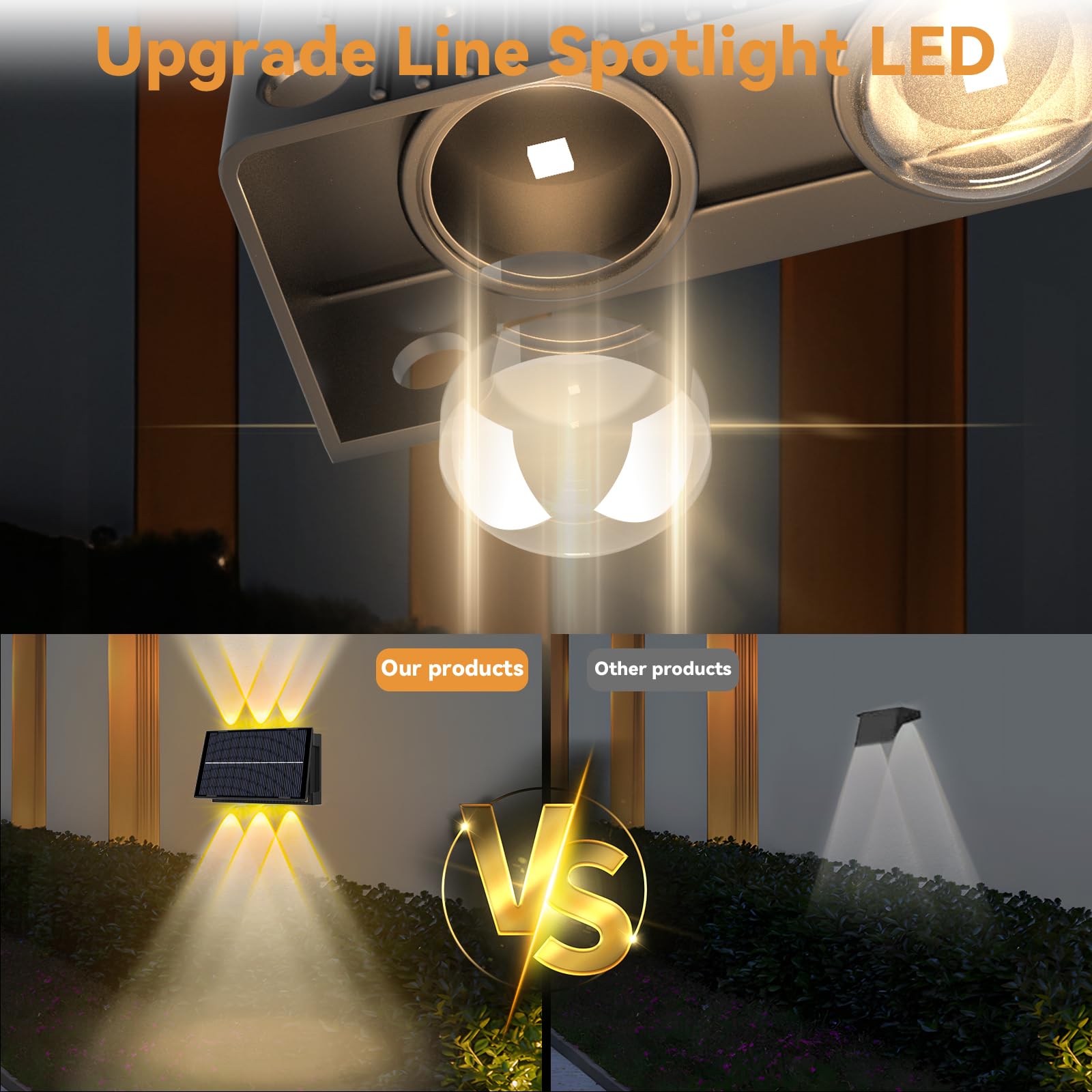 Talwei Solar Wandleuchte Aussen Up and Down Leuchten Solarleuchte für Aussen Warmweiss Led Beleuchtung Wasserdichte Wandleuchte Wand kabellos Wasserdichte Zaun (2, 6 LEDs)