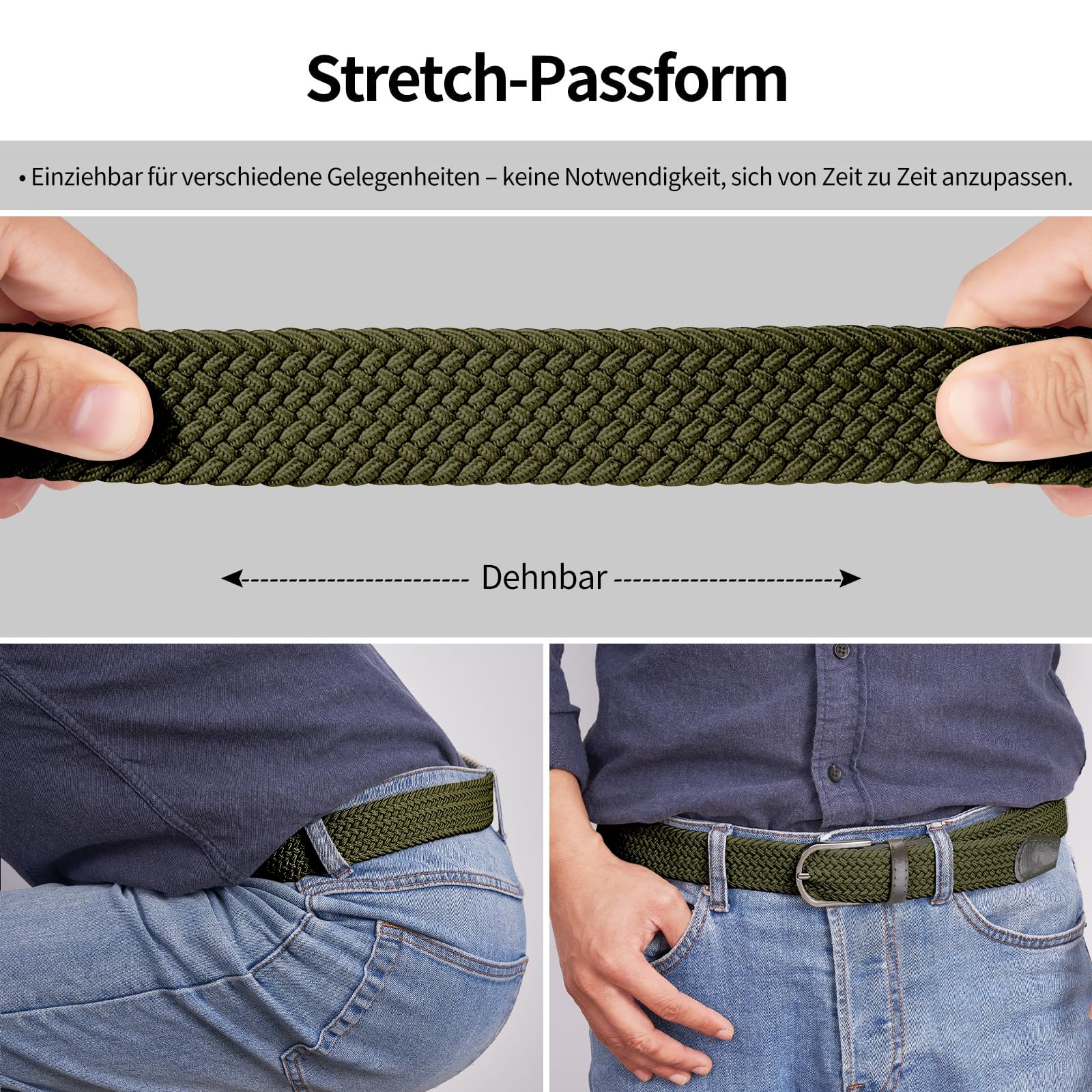 TANGCHAO Stoffgürtel Stretchgürtel Elastik Flechtgürtel Geflochtener und Elastischer Dehnbarer Gürtel für Damen und Herren Breite 3.3cm Länge 90 cm bis 135 cm