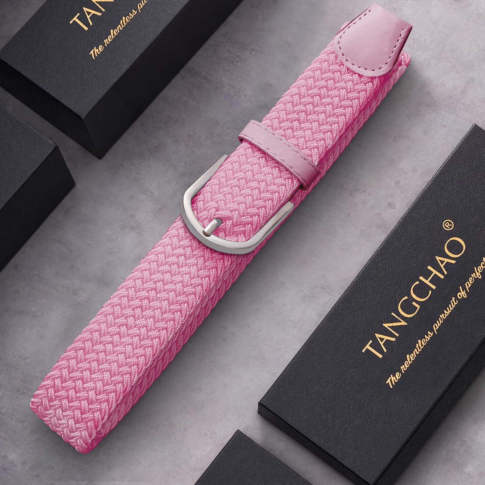 TANGCHAO Stoffgürtel Stretchgürtel Elastik Flechtgürtel Geflochtener und Elastischer Dehnbarer Gürtel für Damen und Herren Breite 3.3cm Länge 90 cm bis 135 cm