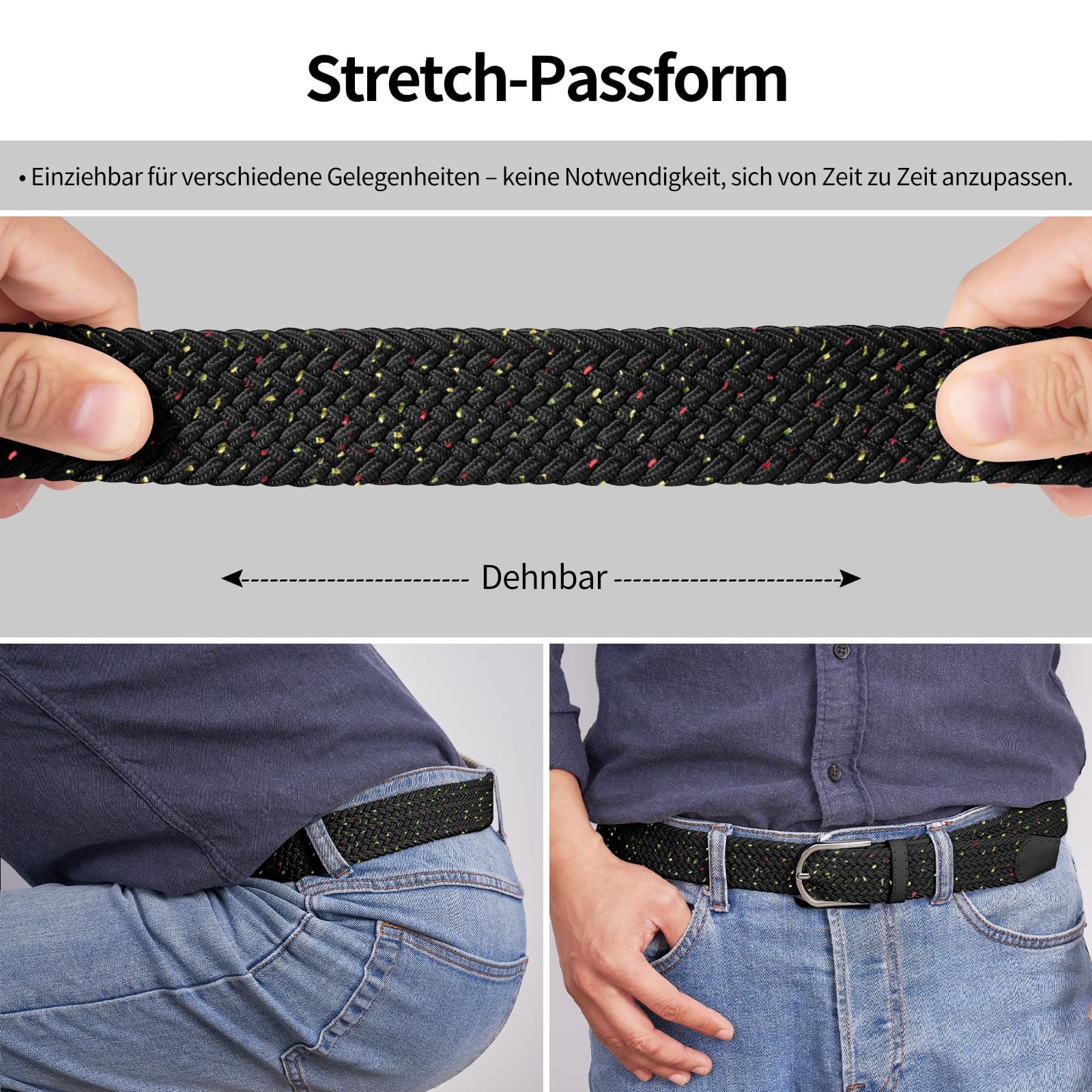 TANGCHAO Stoffgürtel Stretchgürtel Elastik Flechtgürtel Geflochtener und Elastischer Dehnbarer Gürtel für Damen und Herren Breite 3.3cm Länge 90 cm bis 135 cm