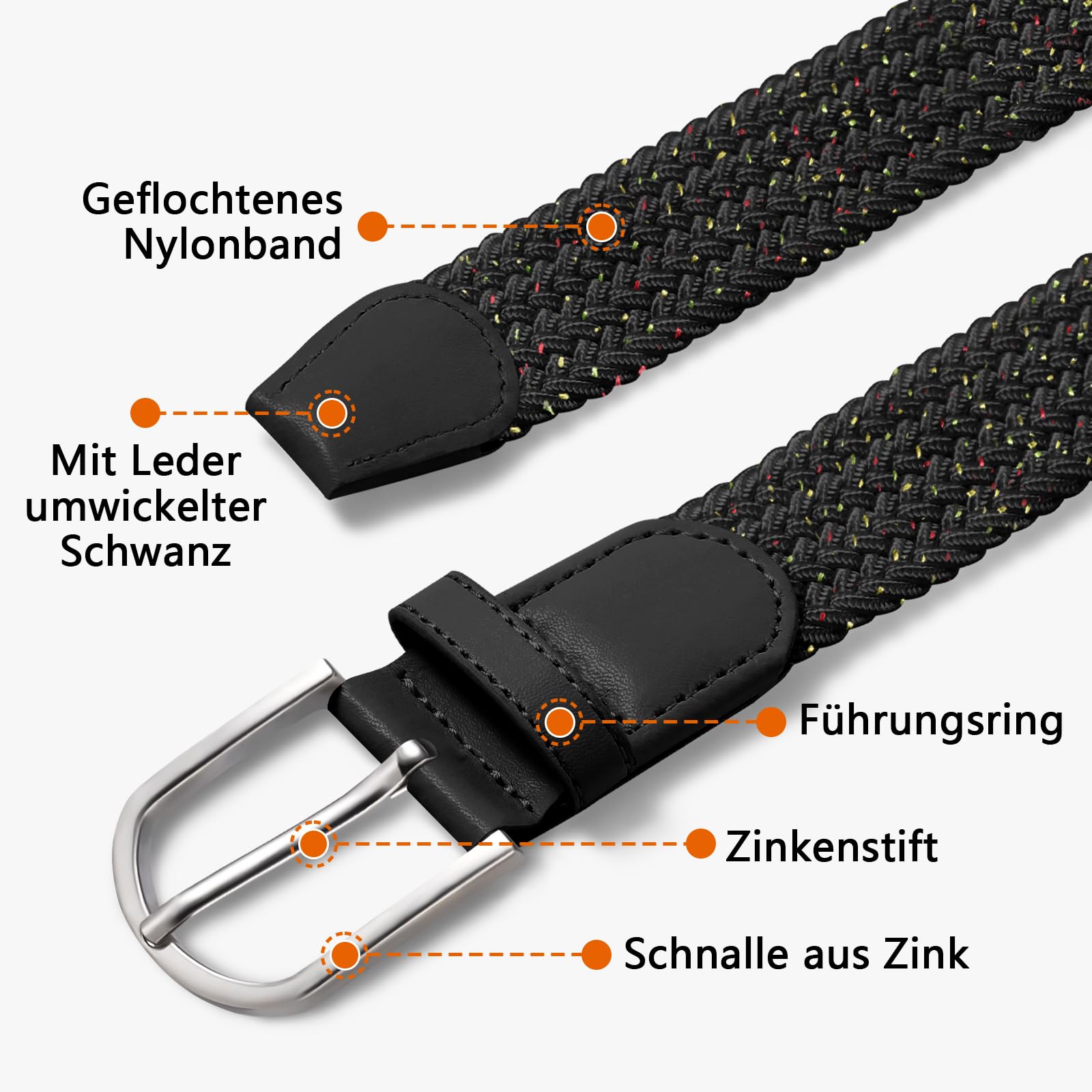 TANGCHAO Stoffgürtel Stretchgürtel Elastik Flechtgürtel Geflochtener und Elastischer Dehnbarer Gürtel für Damen und Herren Breite 3.3cm Länge 90 cm bis 135 cm