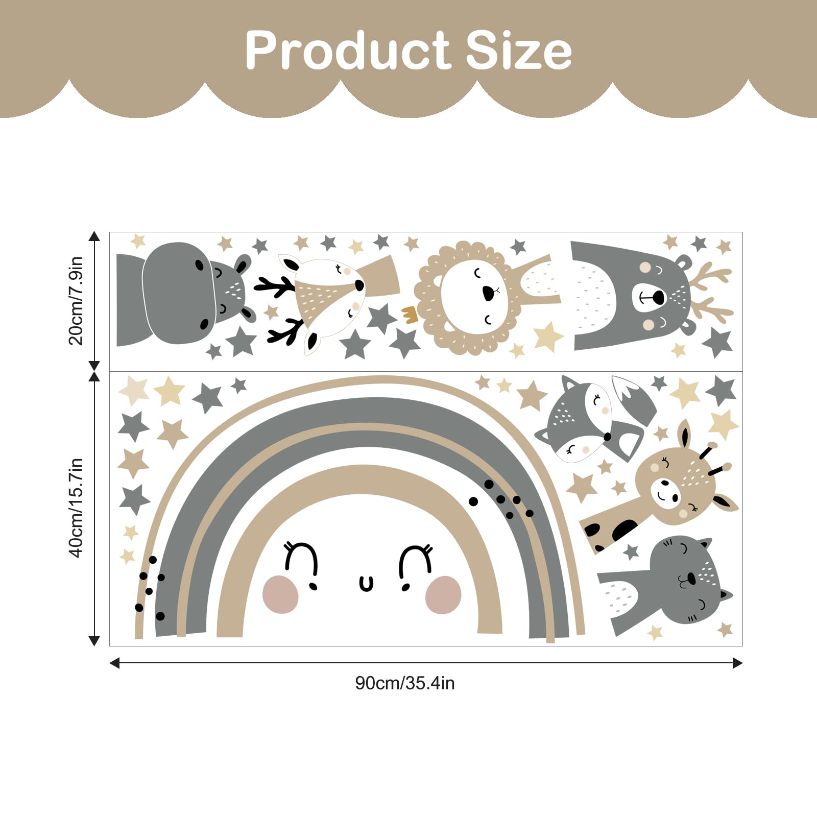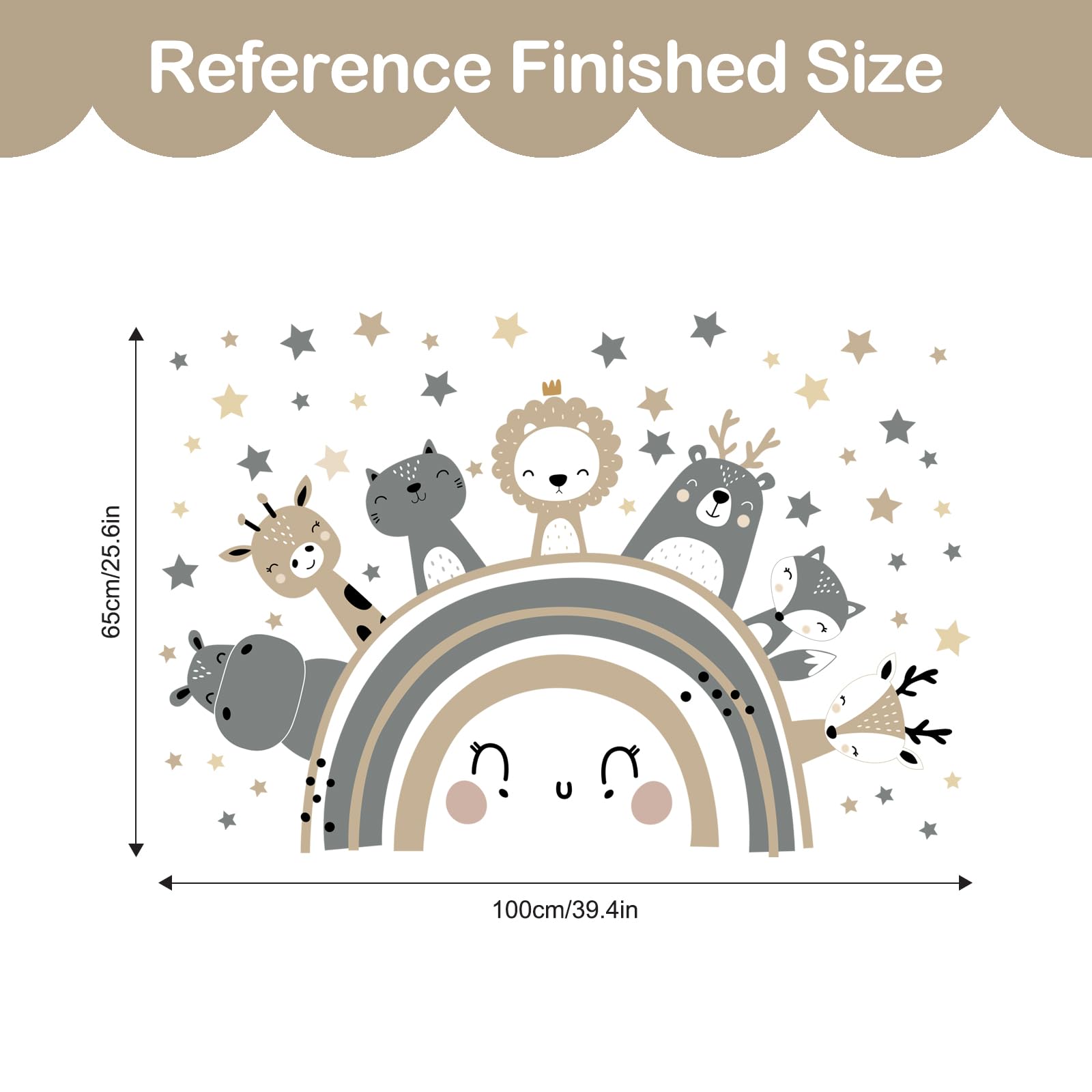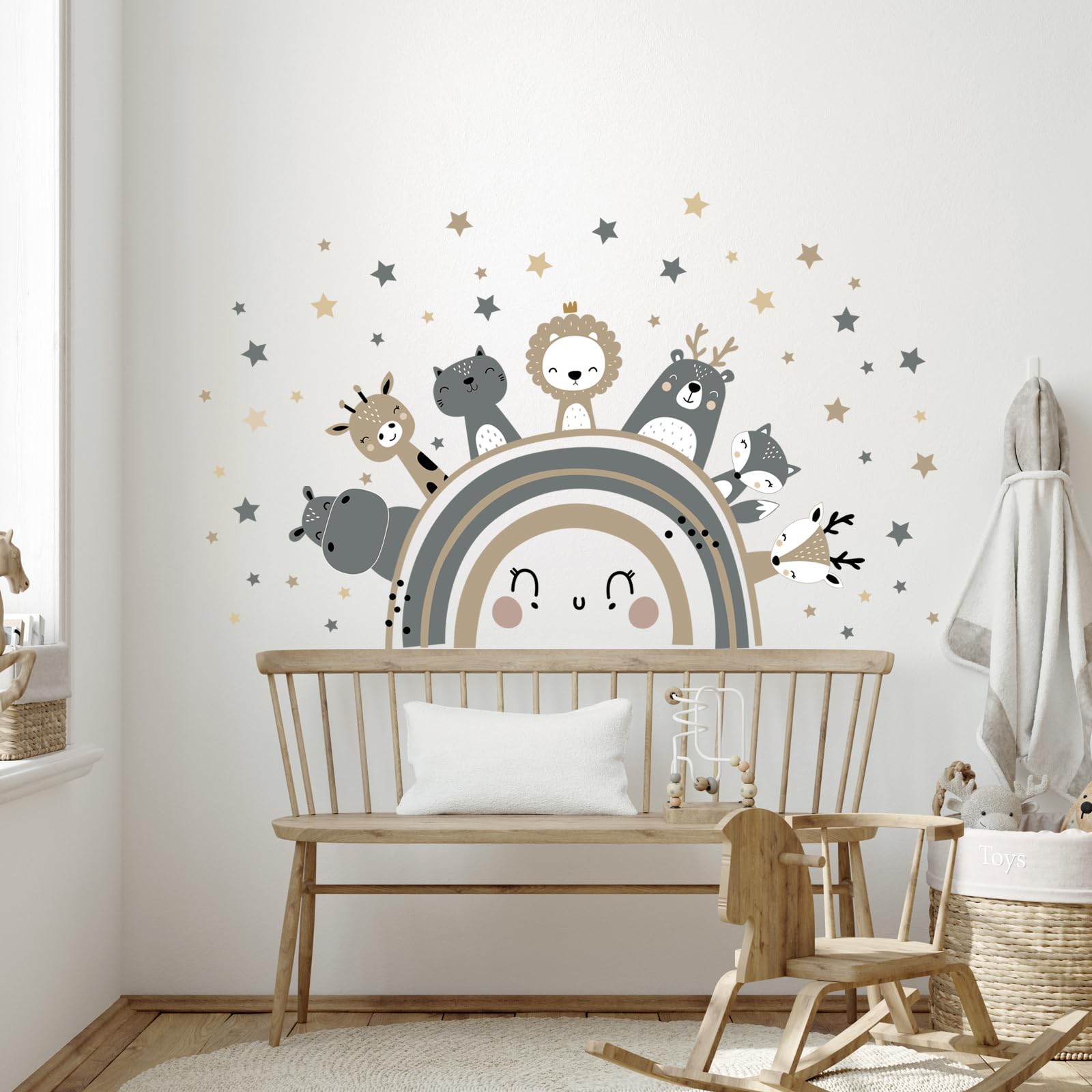 Tanlaby Grosse Regenbogen und Tier Wandtattoo Boho Grau Braun Waldland Tier Wandsticker Nordisch Giraffe Löwe Wandaufkleber für Kinder Babyzimmer Wohnzimmer Schlafzimmer Kinderzimmer Wanddekoration