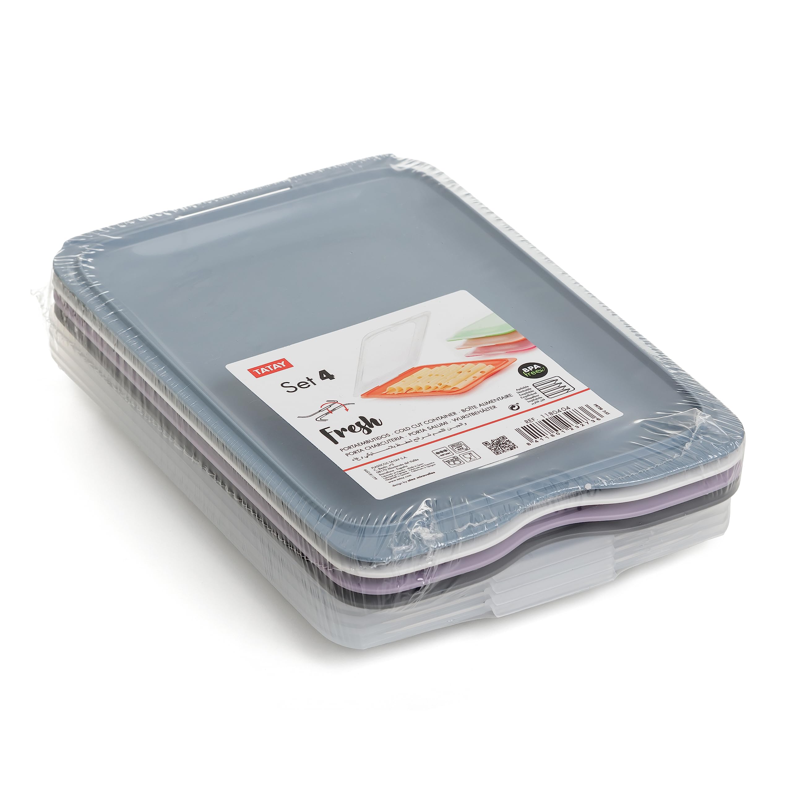 TATAY Aufschnittboxen für Kühlschrank | 4er Set Standard | Frischhaltedosen mit Deckel, Stapelbar | Geeignet für Gefrierschrank, Mikrowelle und Spülmaschine | BPA-frei, 17x3,2x25,2 cm, Pastellfarben