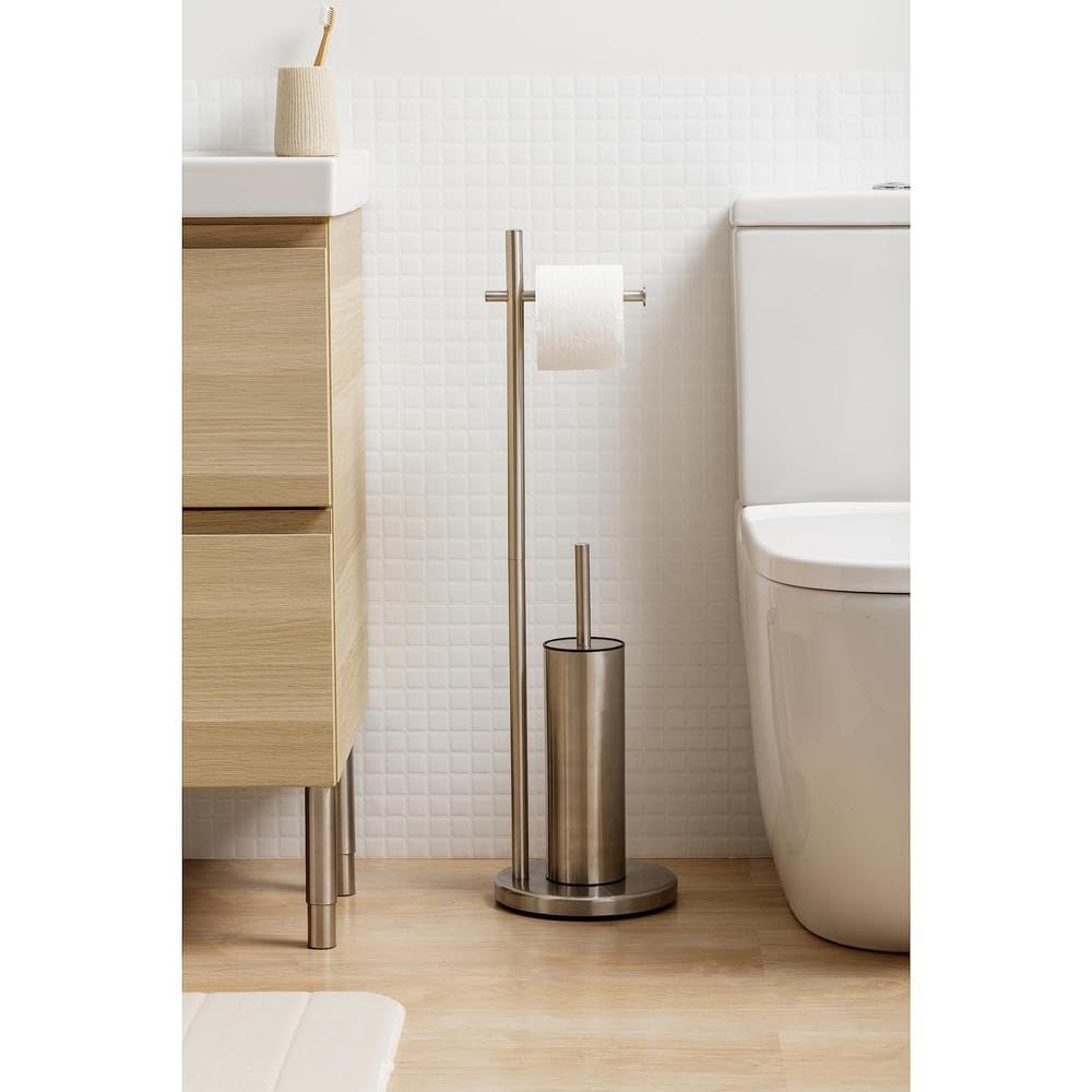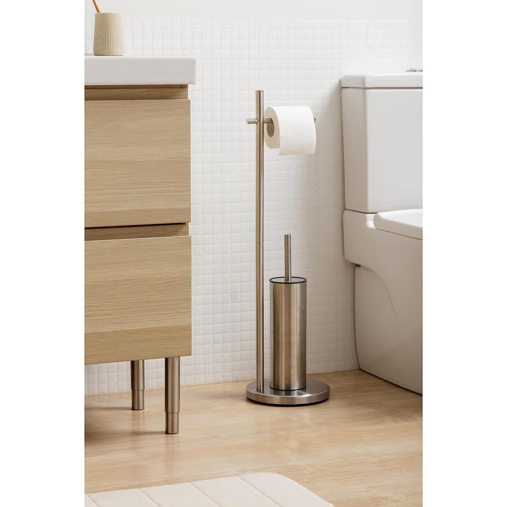 TATAY Toilettenbürste mit Papierhalter | Klopapierhalter mit Klobürste aus Edelstahl | Standfuss mit Gewicht für mehr Stabilität | Bohrfreie Montage | Robust und Elegant | 20,5 x 20,5 x 74,5 cm