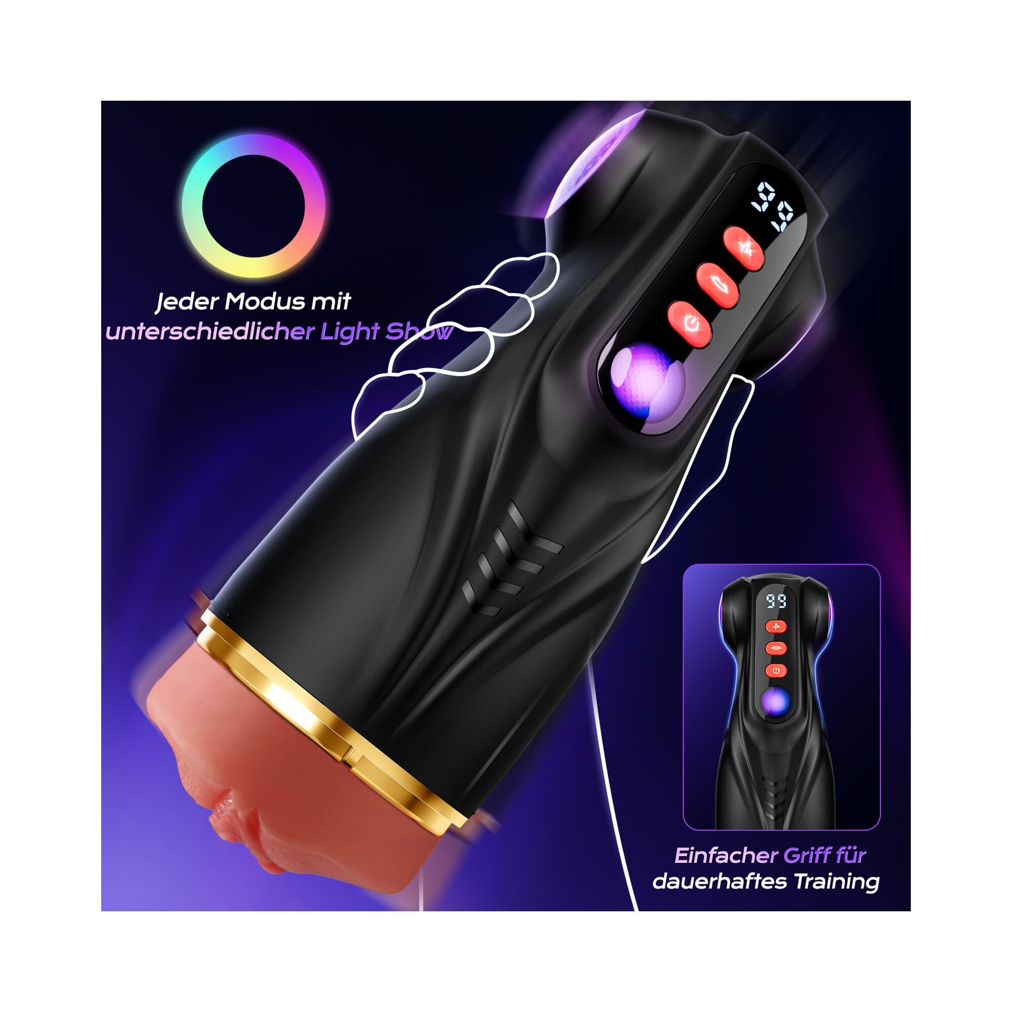 • Lichtshow & LCD-Display: Während Sie den Sex Spielzeug für die Männer benutzen, leuchtet er in 3 verschiedenen Farben. Es gibt Ihnen eine immersive Erfahrung aus der visuellen und sensorischen Sicht. Die erste Zahl auf dem Display das penispumpe sex toys steht für den Vibrationsmodus und die zweite Zahl für den Saugmodus.Wenn Sie bei der Verwendung des männer sex sexspielzeug eine Kombination gefunden haben,die Ihnen gefällt,wechseln Sie bei der nächsten Verwendung einfach zu dieser Zahl