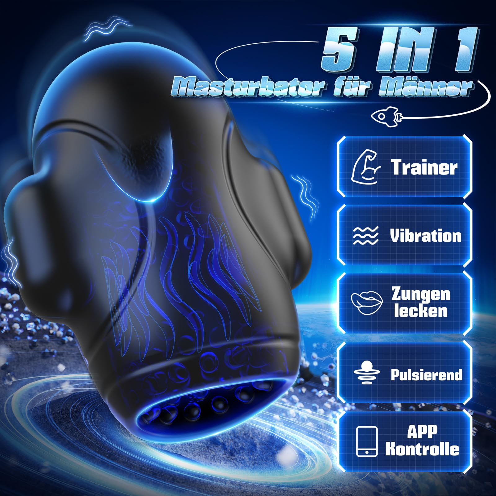 Tauara Masturbieren für Männer Masturbator mit APP, 4 IN 1 Sex Spielzeug für die Männer Vibrator Trainer Masturbatoren mit 10 Vibrations und Lecken Vibratorensets Sexspielzeug
