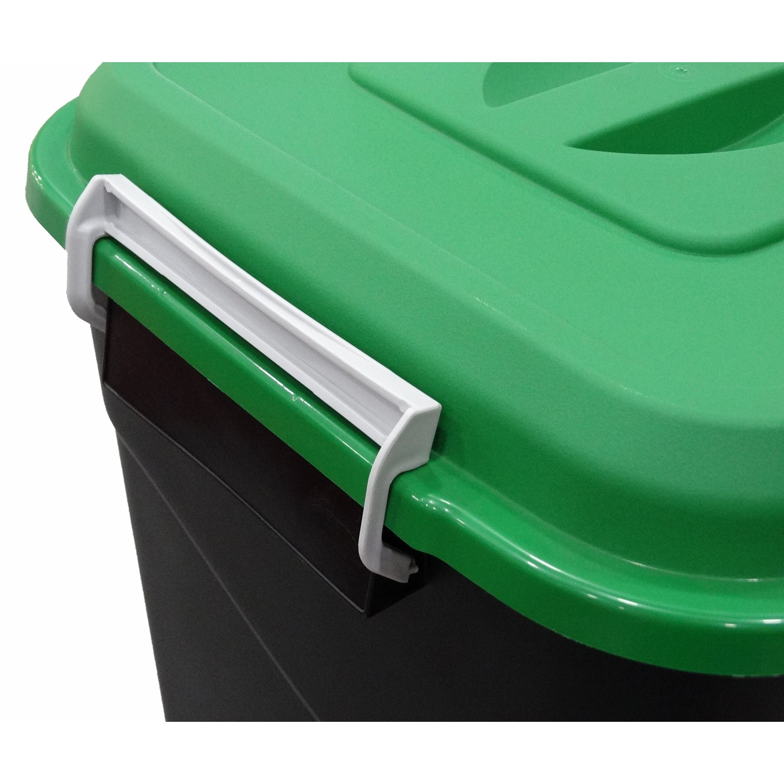 Sortiment EcoTayg: 50L-Abfallbehälter. Der Behälter umfasst einen Tragegriff am abnehmbaren Deckel sowie zwei seitliche Tragegriffe mit Sicherheitsverschluss, mit denen der Transport und die Aufstellung sehr erleichtert werden. Sein kippsicheres Design und sein Sicherheitsverschluss verleiht dem Behälter zusätzliche Sicherheit. In Spanien von Tayg gefertigtes Produkt aus hochwertigem Polypropylen.