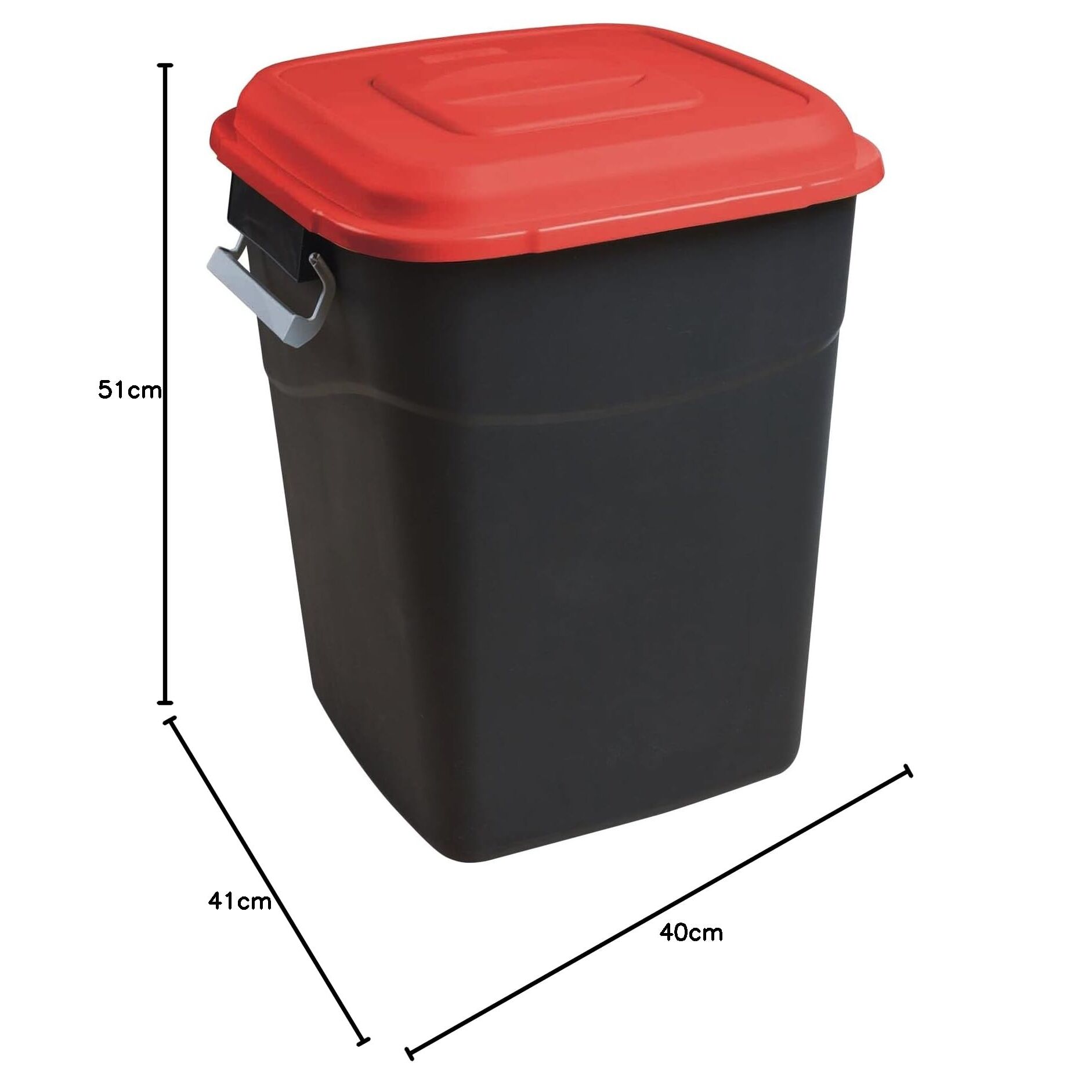 Sortiment EcoTayg: 50L-Abfallbehälter. Der Behälter umfasst einen Tragegriff am abnehmbaren Deckel sowie zwei seitliche Tragegriffe mit Sicherheitsverschluss, mit denen der Transport und die Aufstellung sehr erleichtert werden. Sein kippsicheres Design und sein Sicherheitsverschluss verleiht dem Behälter zusätzliche Sicherheit. In Spanien von Tayg gefertigtes Produkt aus hochwertigem Polypropylen.