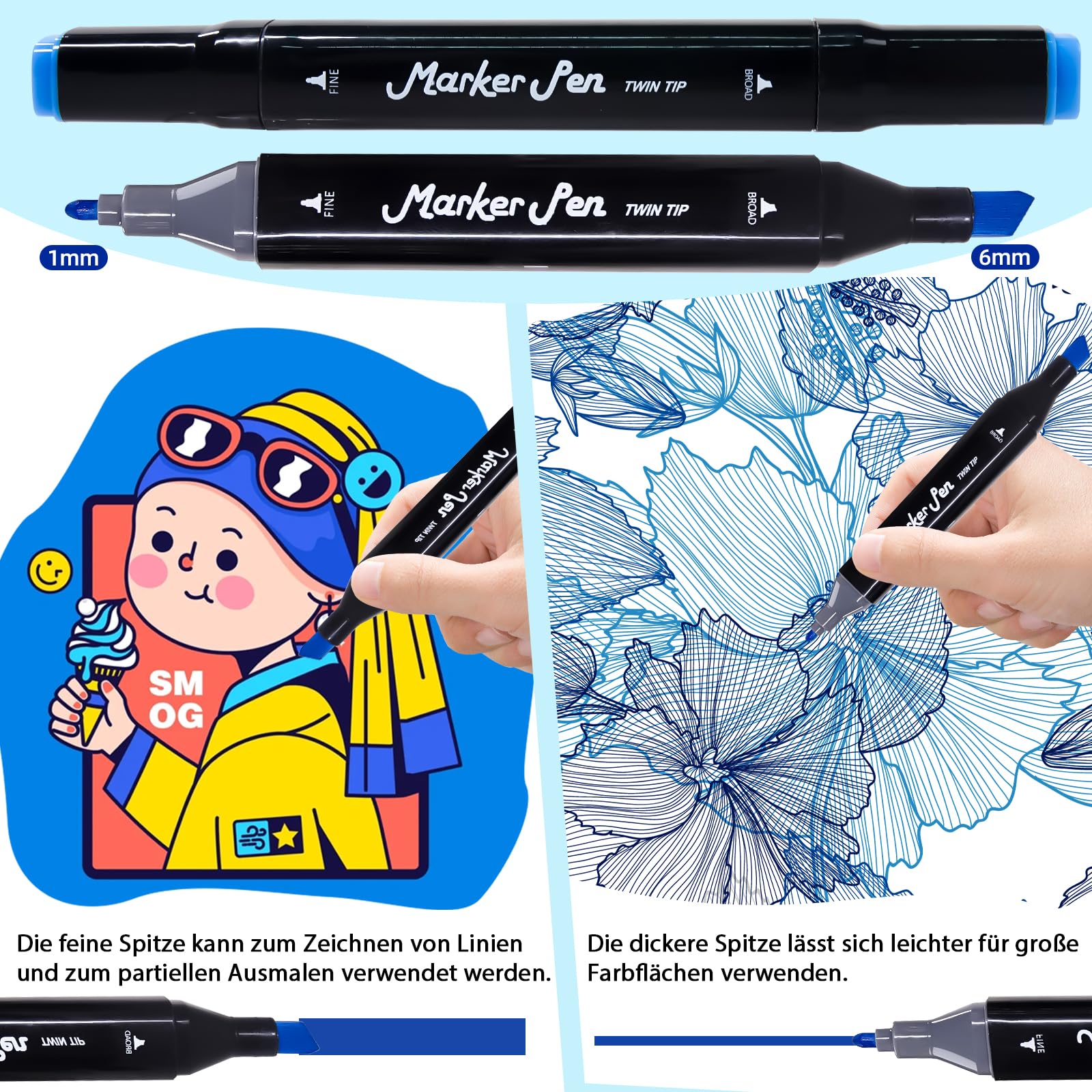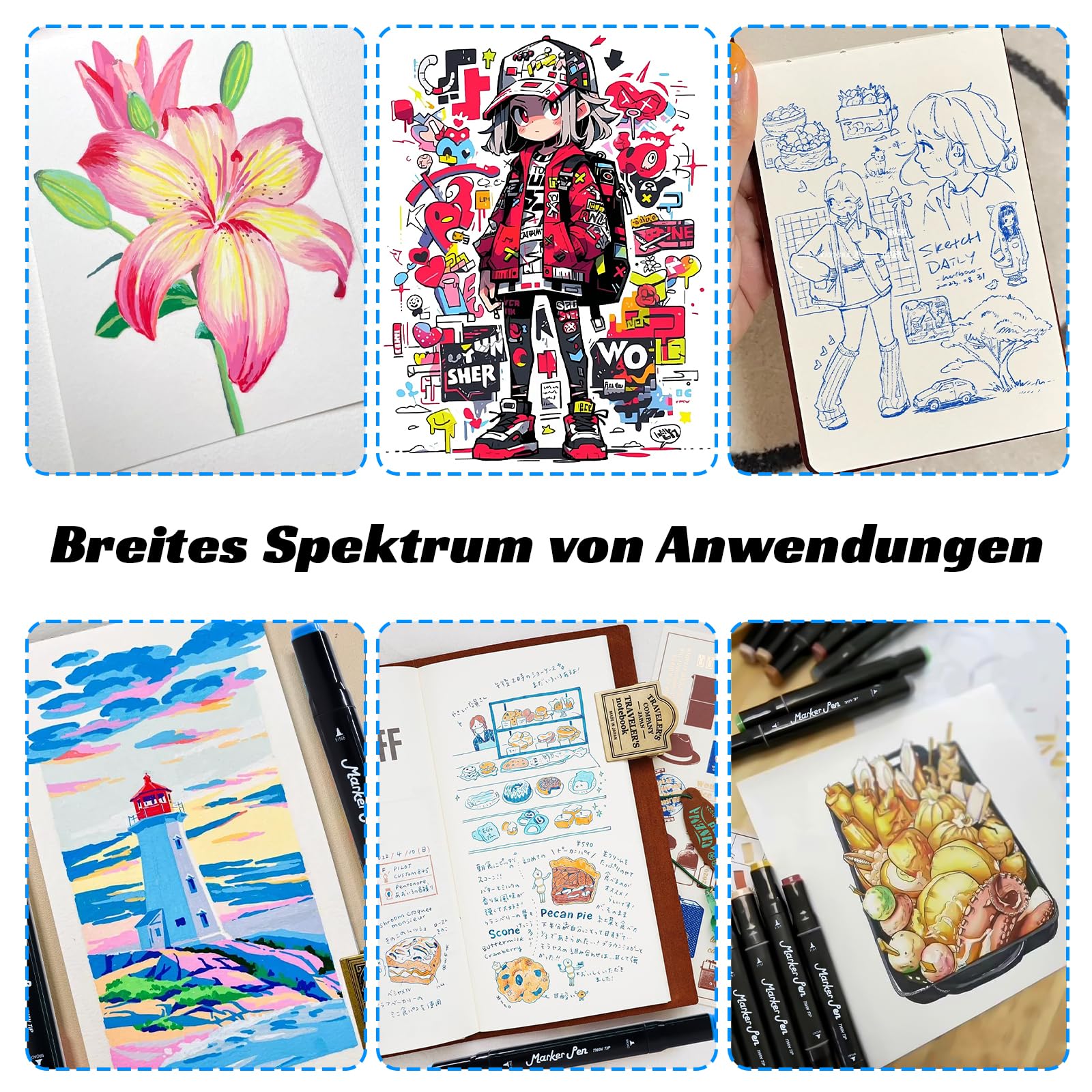 TBC The Best Crafts 120 Farben alkohol marker, doppelseitiger alcohol marker, schnell trocknend und Permanenter alkoholmarker set für Malerei, Design, Manga