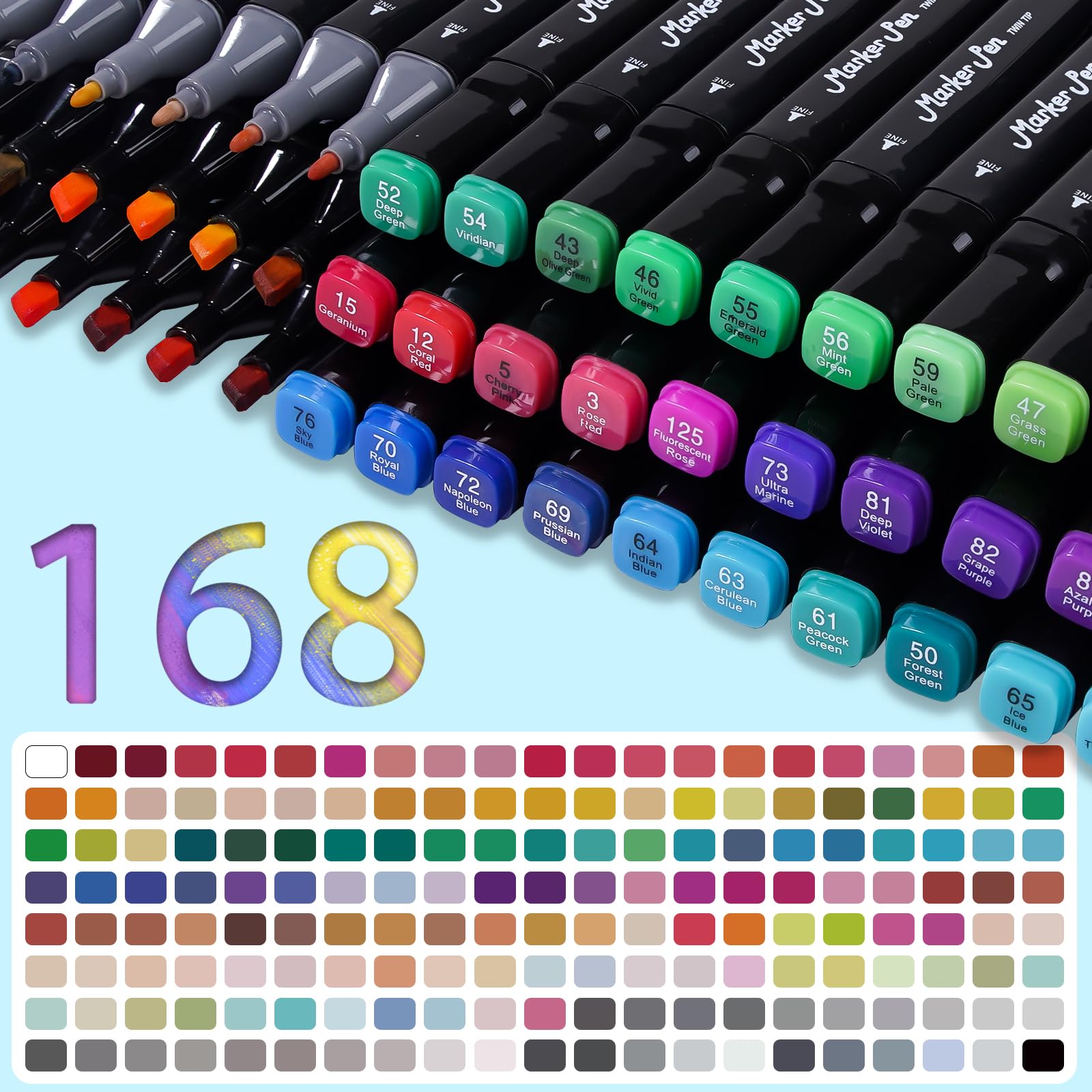 TBC The Best Crafts 168 Farben alkohol marker, doppelseitiger alcohol marker, schnell trocknend und Permanenter alkoholmarker set für Malerei, Design, Manga
