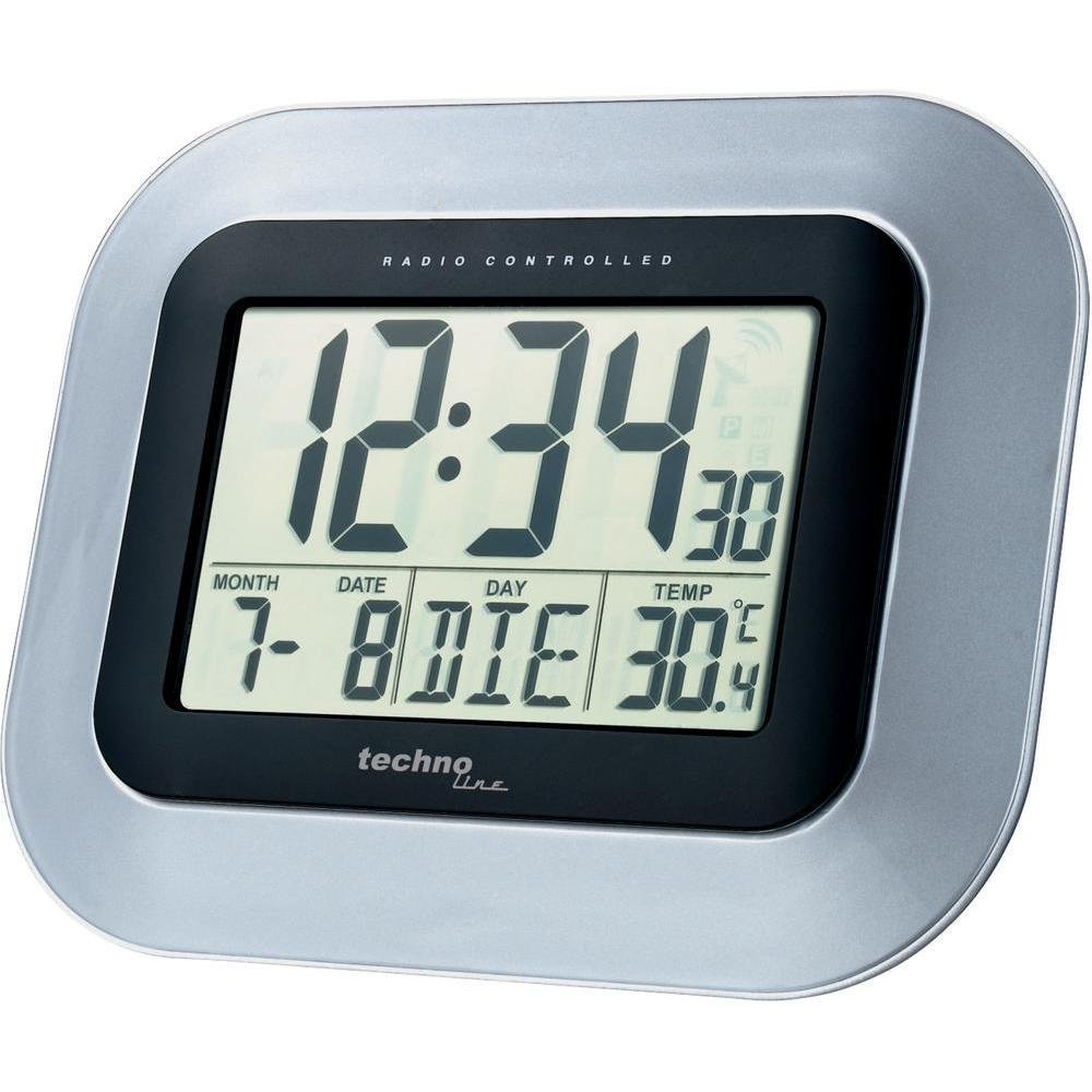Sehr genaue Wand- oder Tischuhr mit einem silber glänzenden Aussenrahmen. Die 45 mm grossen Zahlen der Zeitanzeige sind auf dem kontrastreichen Display hervorragend ablesbar. Die Uhr hat ausserdem eine Temperaturanzeige und eine mehrsprachige Datumsanzeige