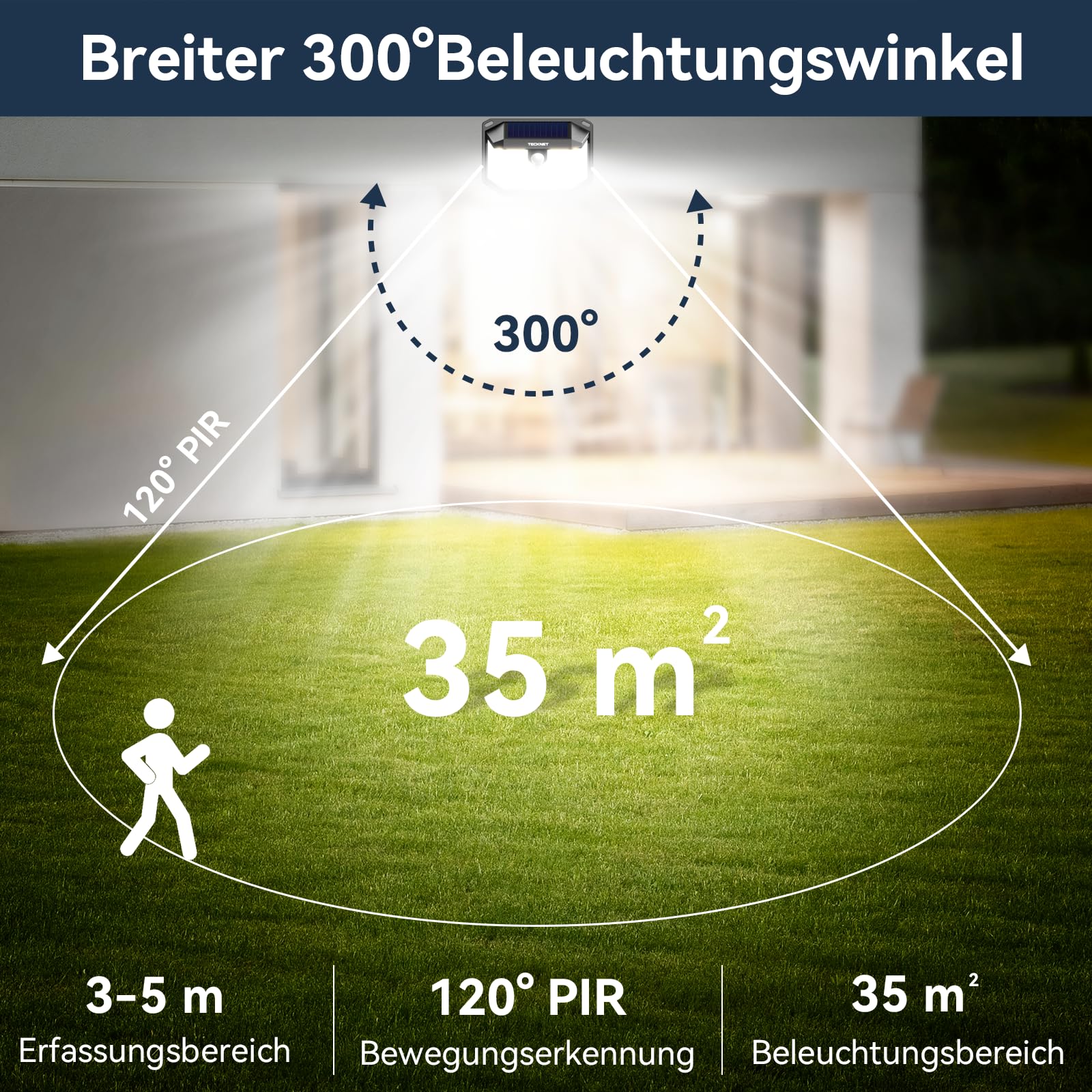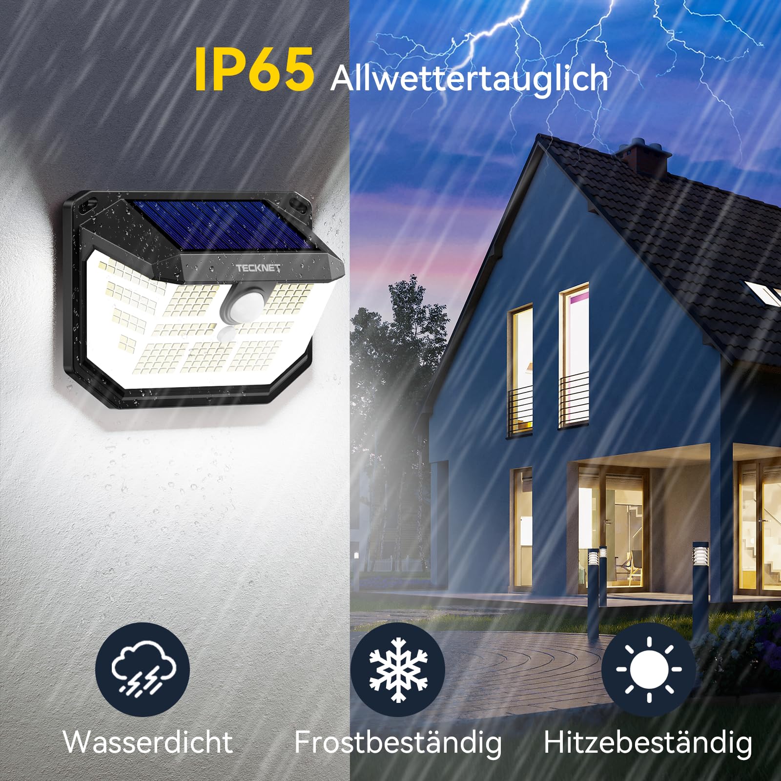 TECKNET Solarlampen für Aussen, 【4 Stücke】 231 LED Solarlampe 300° Superhelle mit Bewegungsmelder 3 Modi IP65 Wasserdichte Wandleuchte für Wand Post Pathway Garten Garage