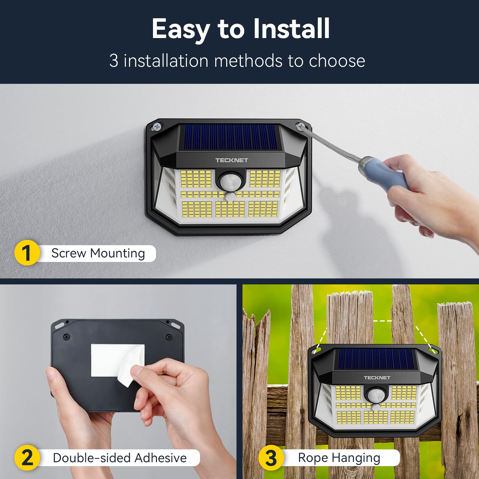 TECKNET Solarlampen für Aussen mit Bewegungsmelder 1 Stück, 231 LED Aussenleuchte Solar IP65 Wasserdicht Solarleuchte 3 Modi Strahler mit Fernbedienung, Solar lampe outdoor für Garten Garage Aussen