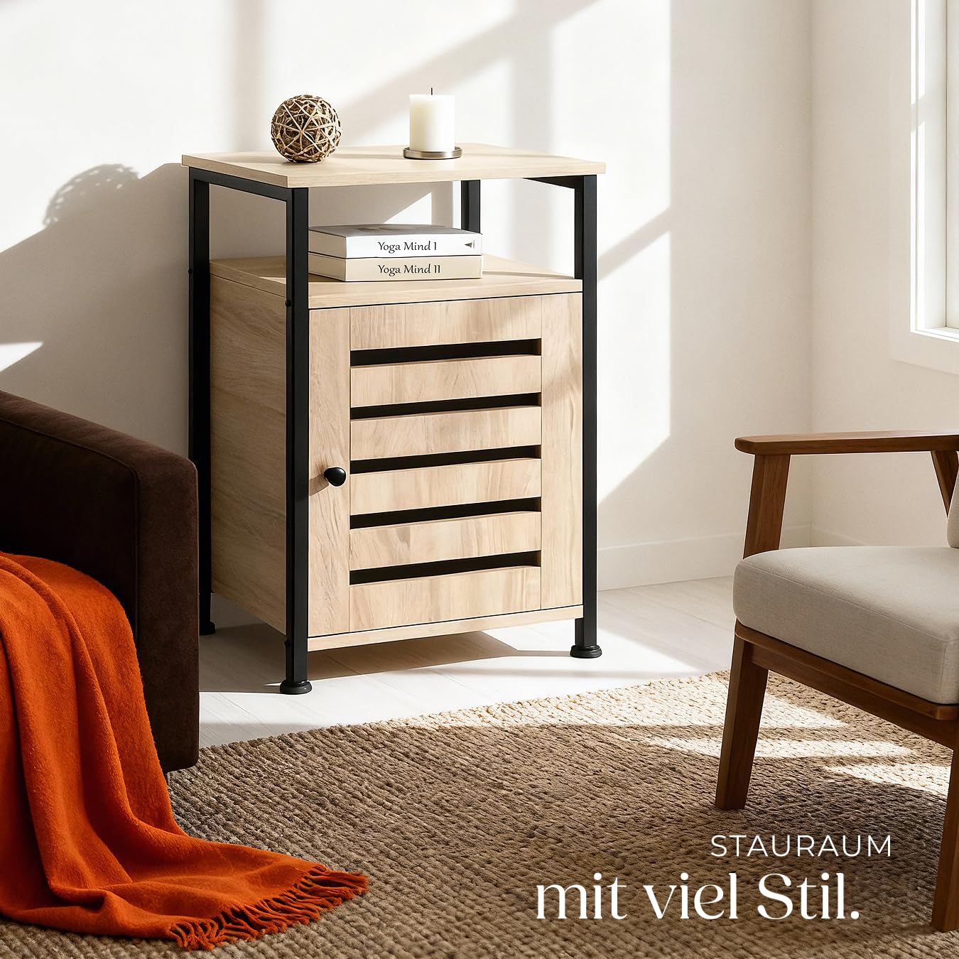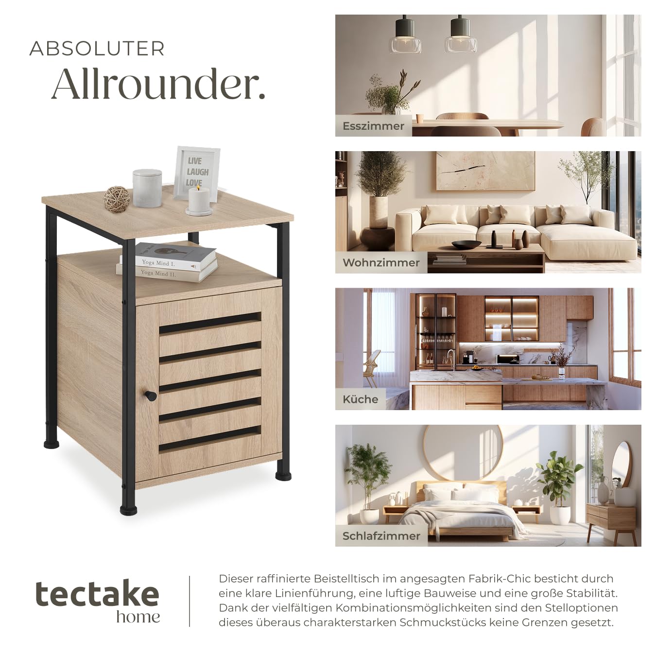tectake® Beistellschrank, Nachttisch mit Ablage, Nachtschrank aus Holz und Metall, 40,5 x 60,5 cm, Deko Schlafzimmer, Wohnzimmer, Zimmer Deko, Blumenständer - Industrial Holz hell, Eiche Sonoma