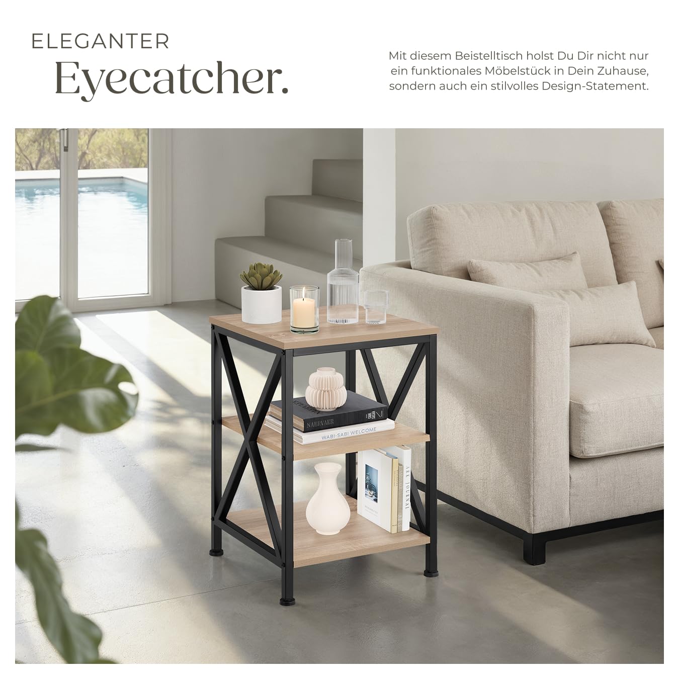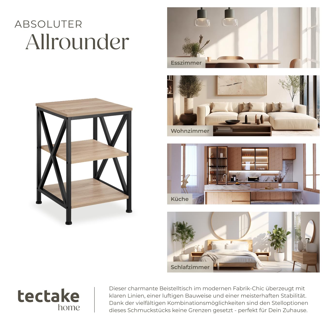 tectake® Industrial Möbel, Beistelltisch Holz und Metall, Schlafzimmer Nachttisch mit 3 Ebenen, Couchtisch, Wohnzimmertisch, Beistelltisch Couch (Industrial Holz hell, Eiche Sonoma)