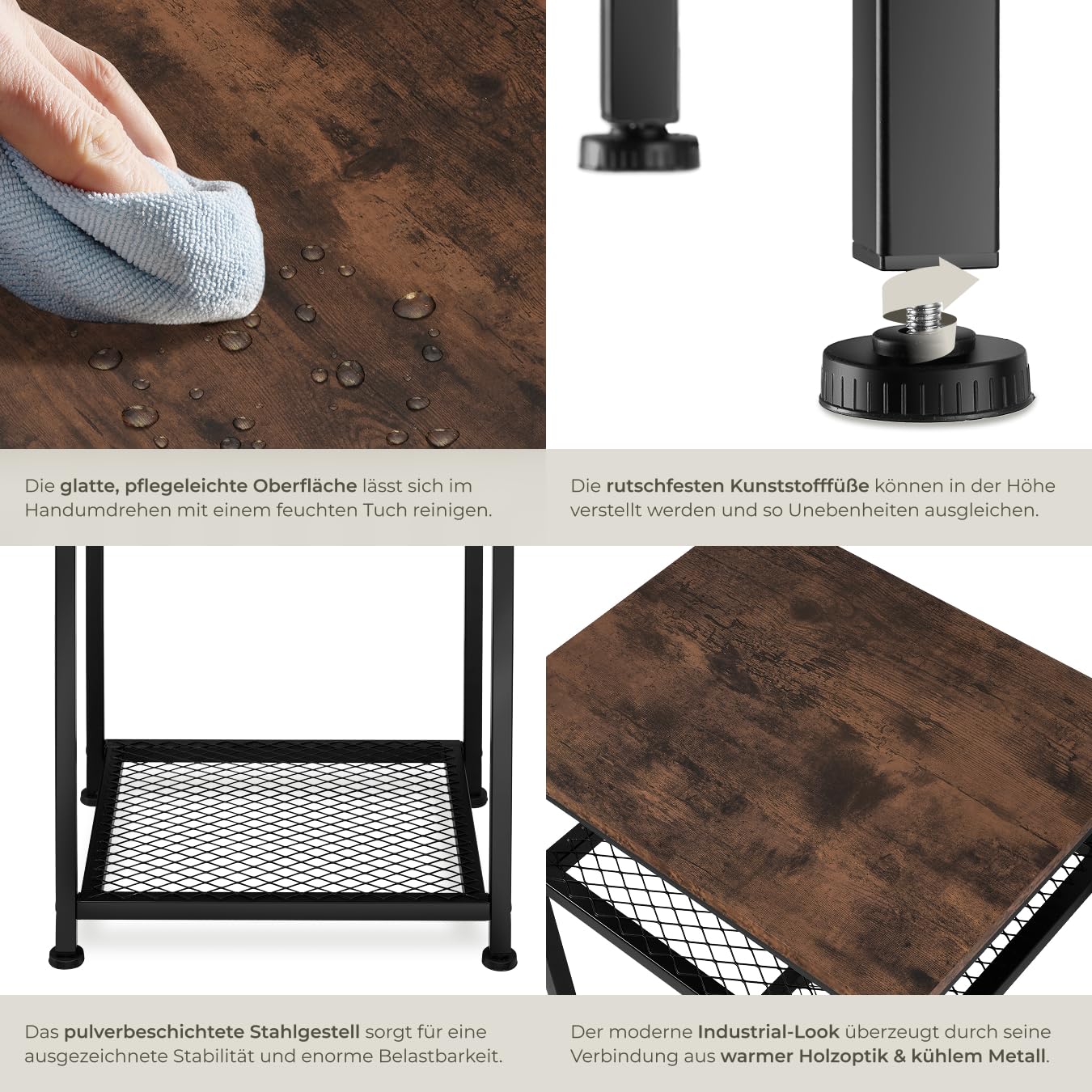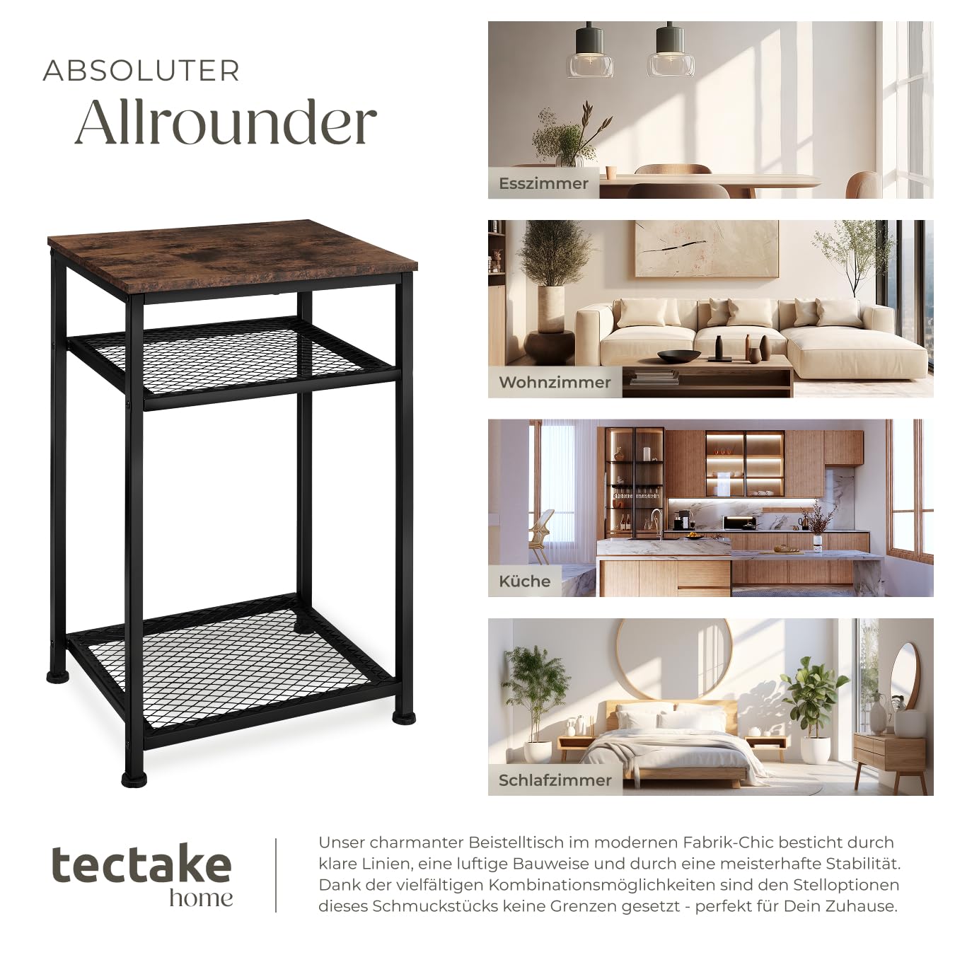 tectake® Beistelltisch Holz und Metall, Couchtisch mit Stauraum auf 3 Ebenen, Tisch Deko Wohnzimmer Möbel, Blumenständer, Deko Schlafzimmer, Beistelltisch Couch - Industrial Dunkelbraun