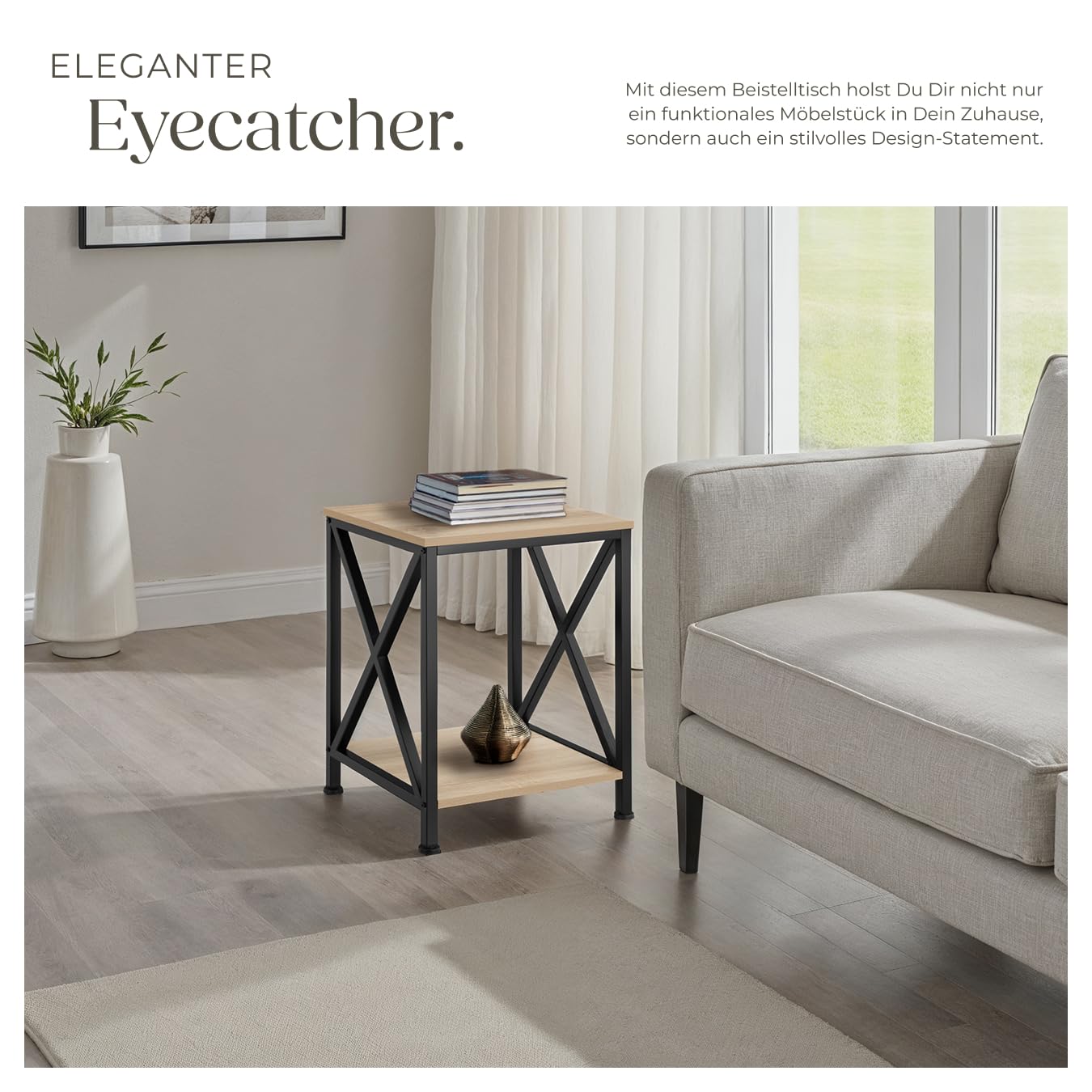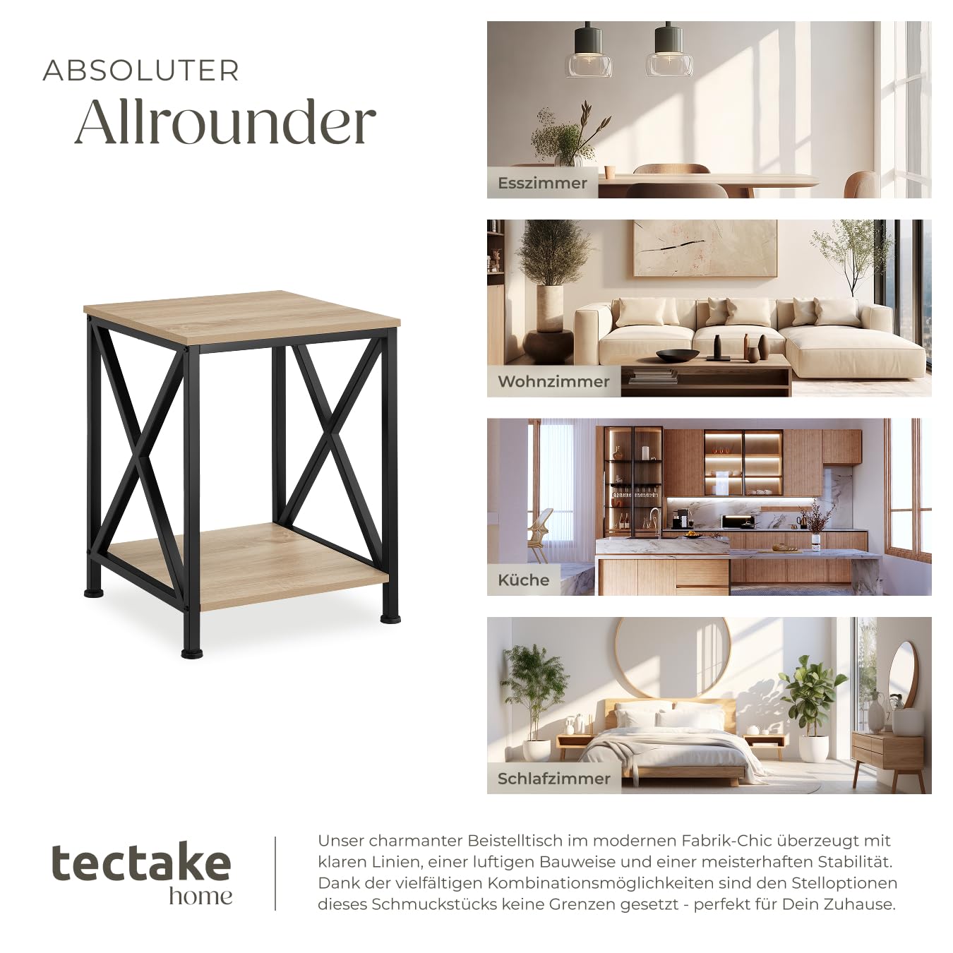 tectake® Industrial Möbel, Beistelltisch Holz und Metall, Schlafzimmer Nachttisch mit 2 Ebenen, Couchtisch mit X-Streben, Wohnzimmertisch, Beistelltisch Couch - Industrial Holz hell, Eiche Sonoma