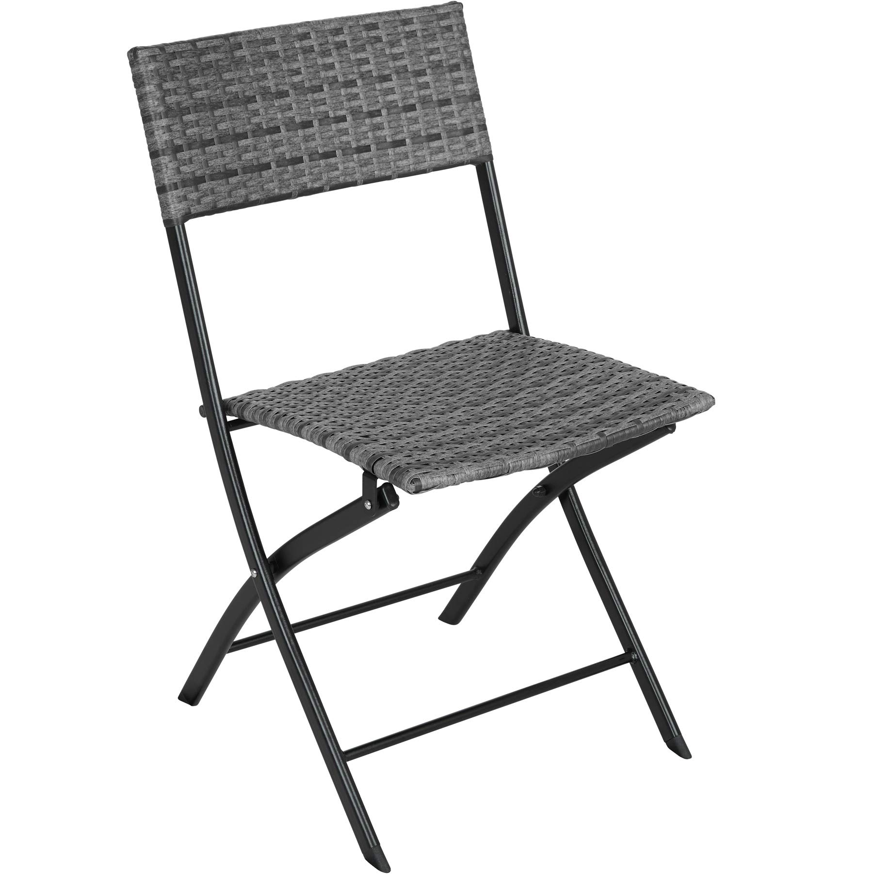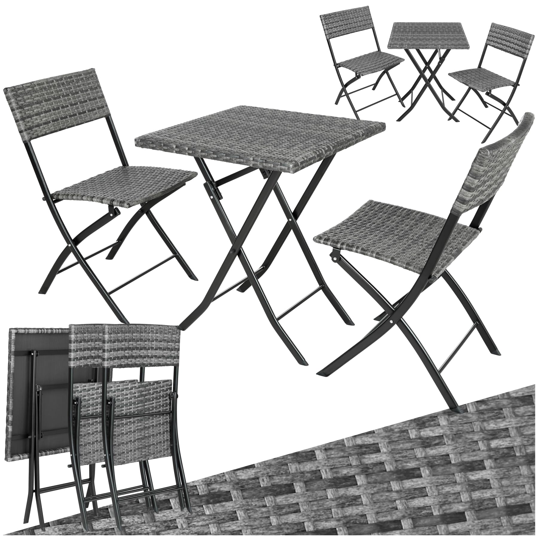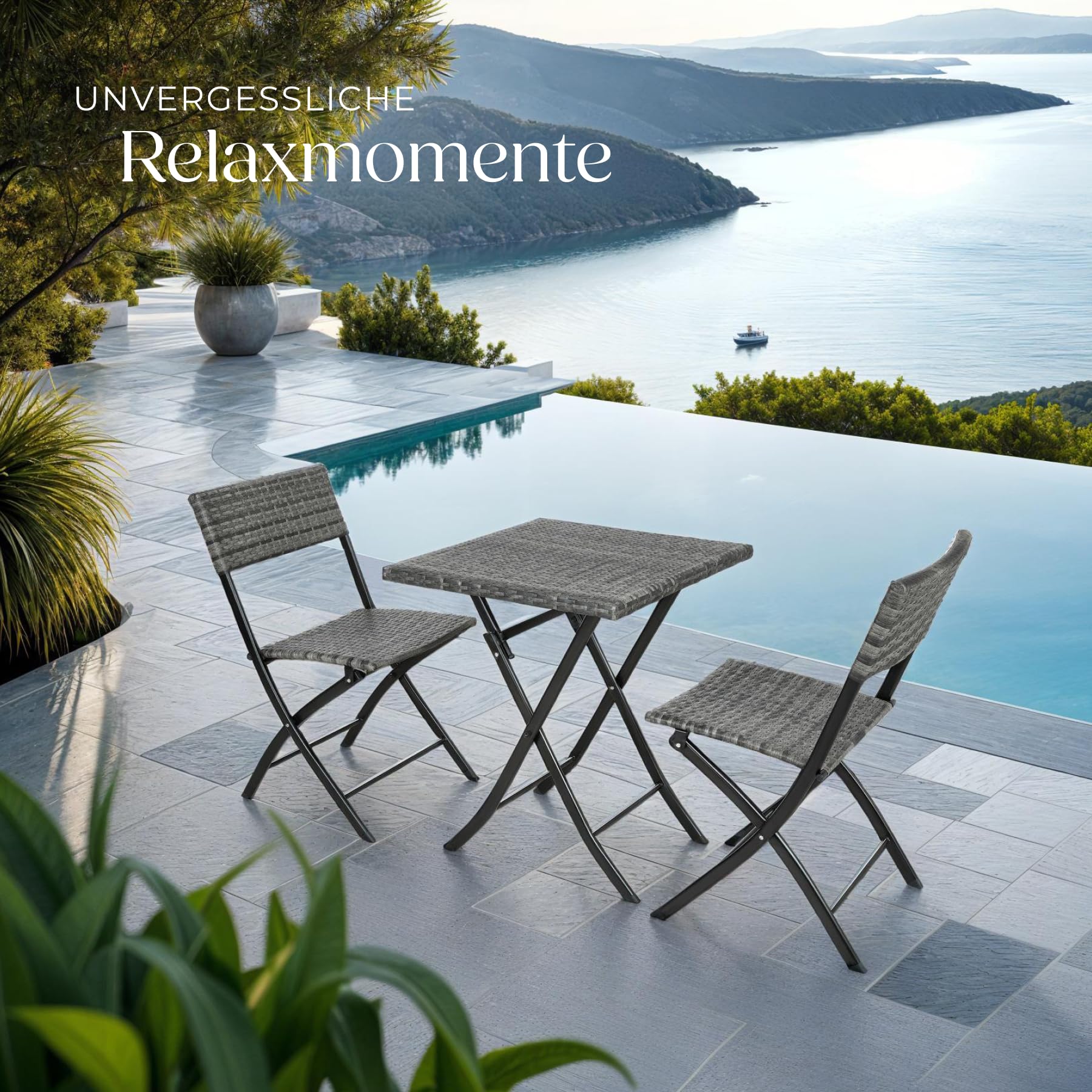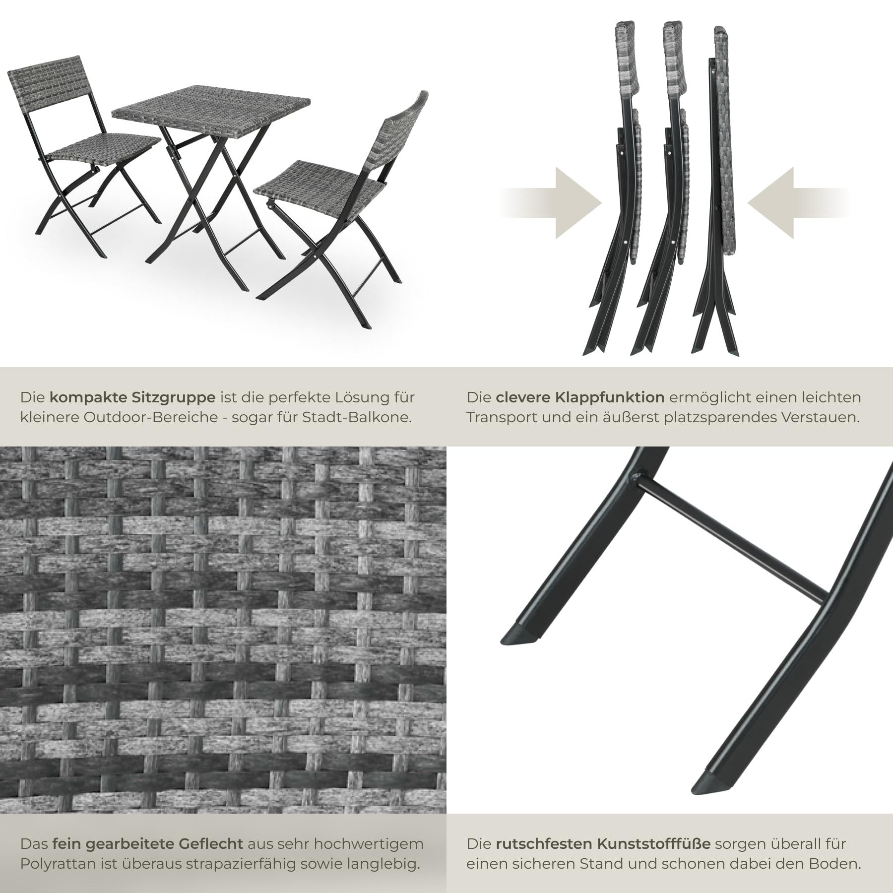 tectake® Rattan Balkon oder Garten Bistro Möbel Set, Sitzgruppe mit 2 Stühlen und 1 Kleiner Esstisch, platzsparend klappbar, Gartenmöbel, Balkonmöbel Kleiner Balkon - grau
