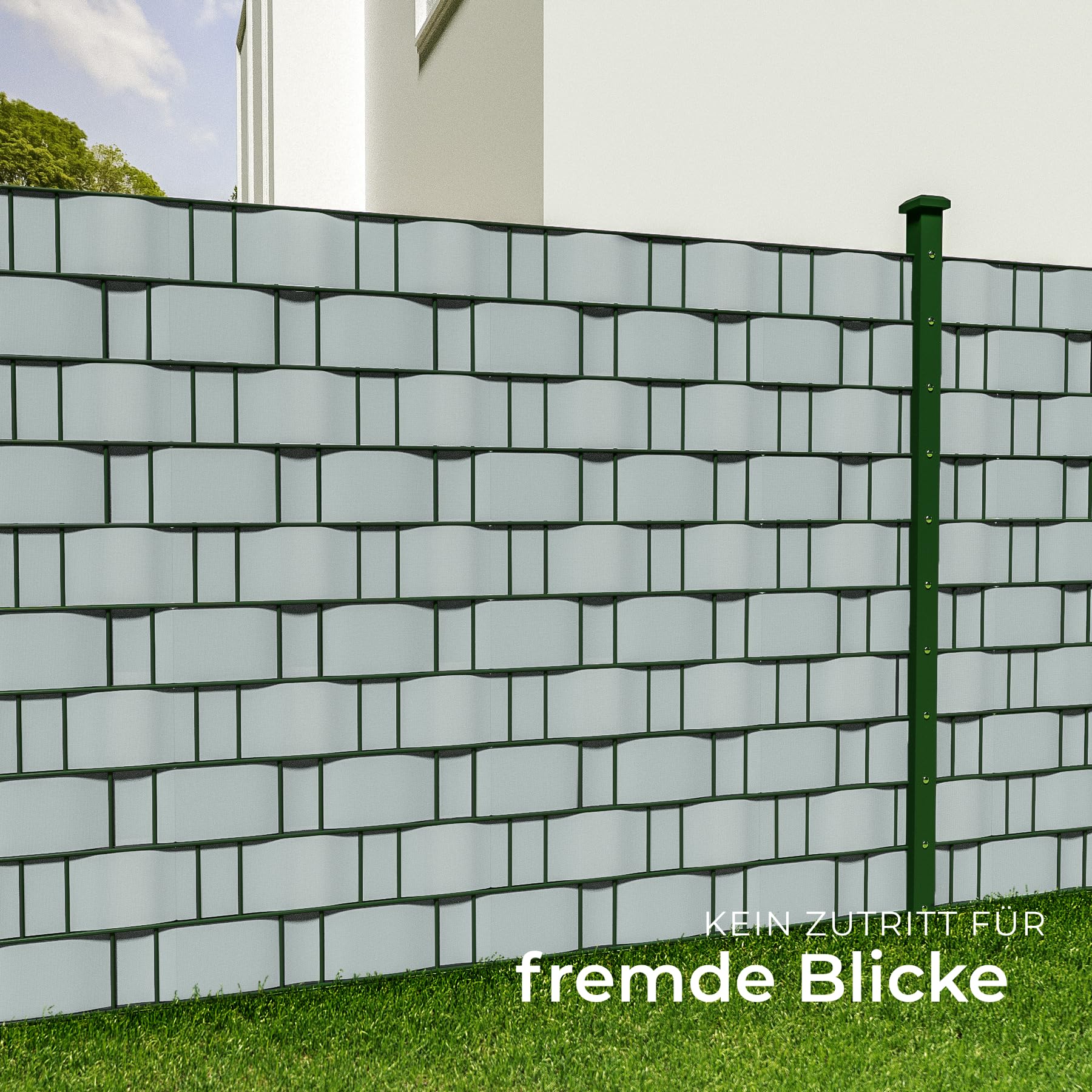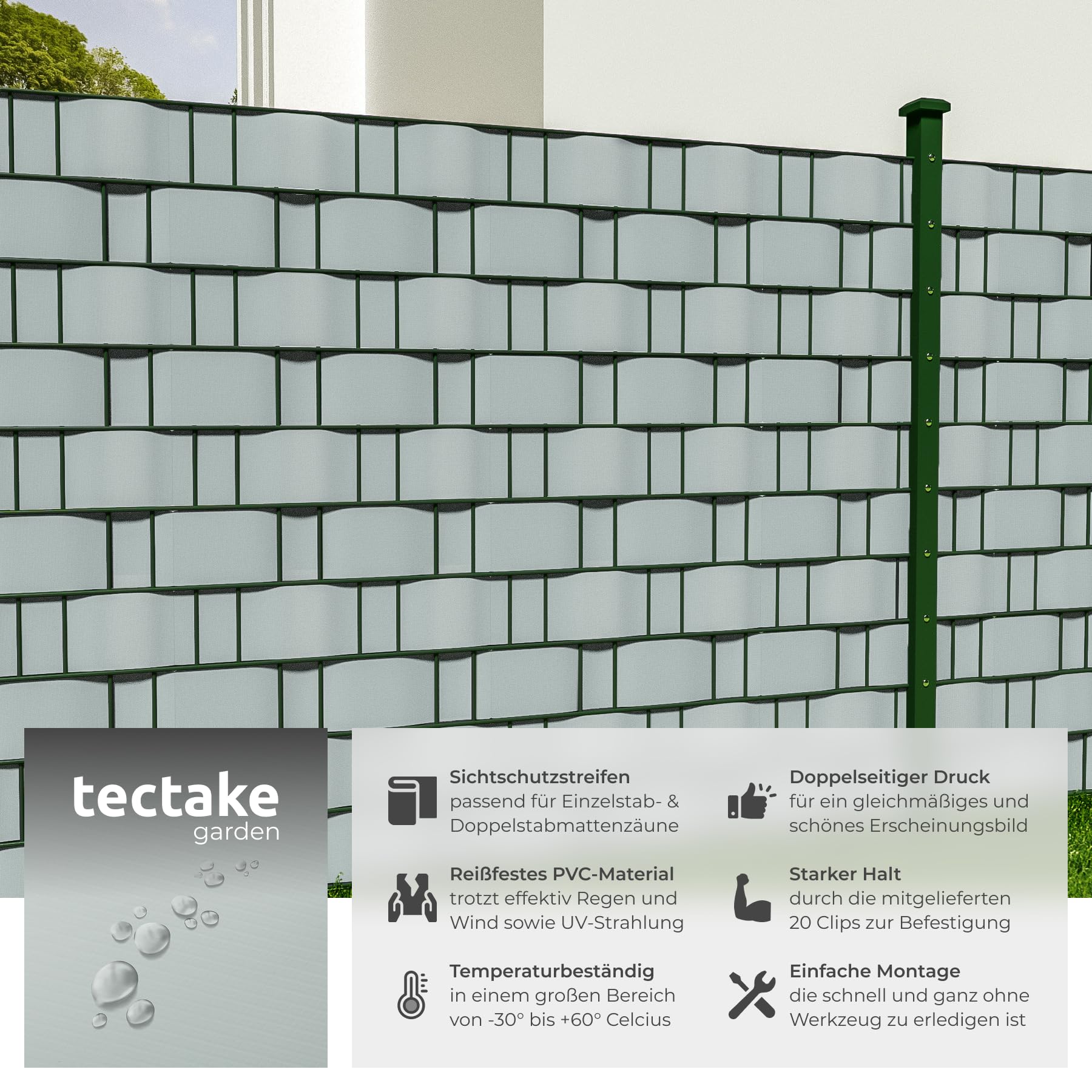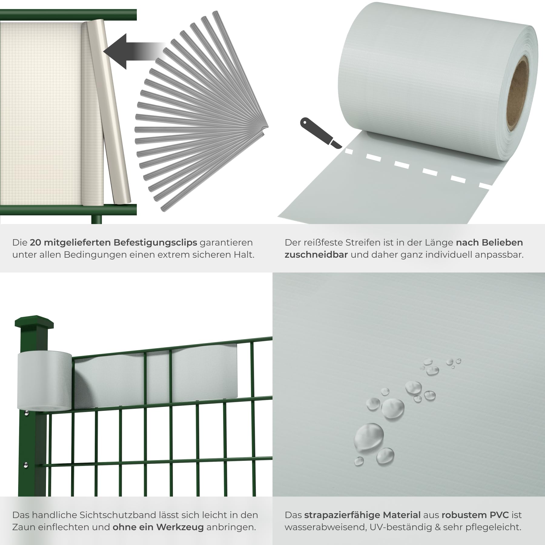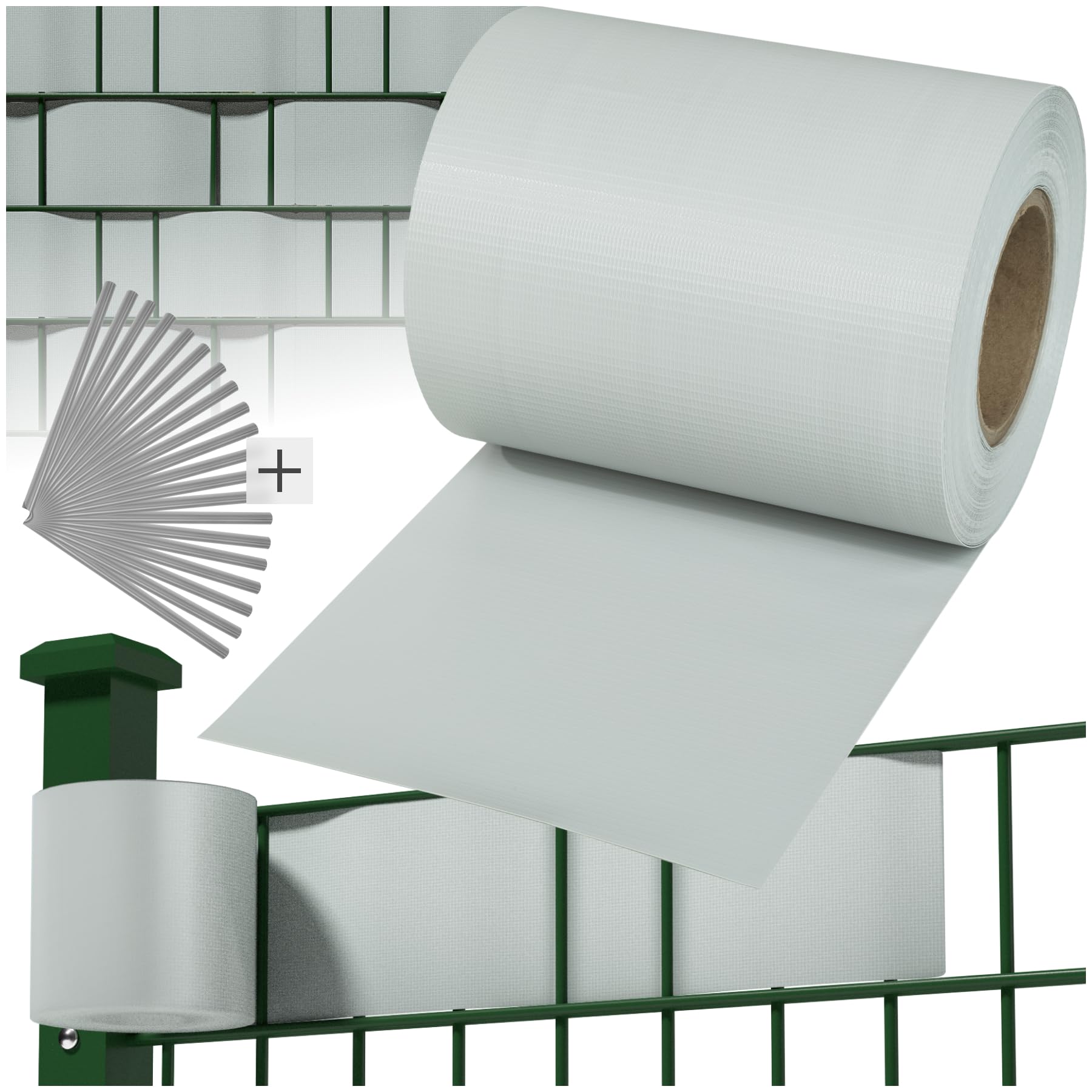 tectake® Sichtschutzfolie, Sichtschutzstreifen mit Befestigungsclips, Windschutz, Sonnenschutz, Sichtschutzmatte für Balkon, Garten, Terrasse, für Stabmattenzaun und Zaunelemente - 35 m, hellgrau