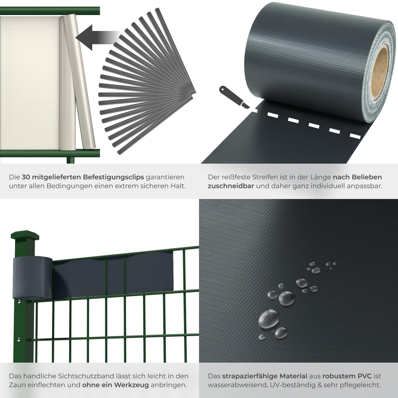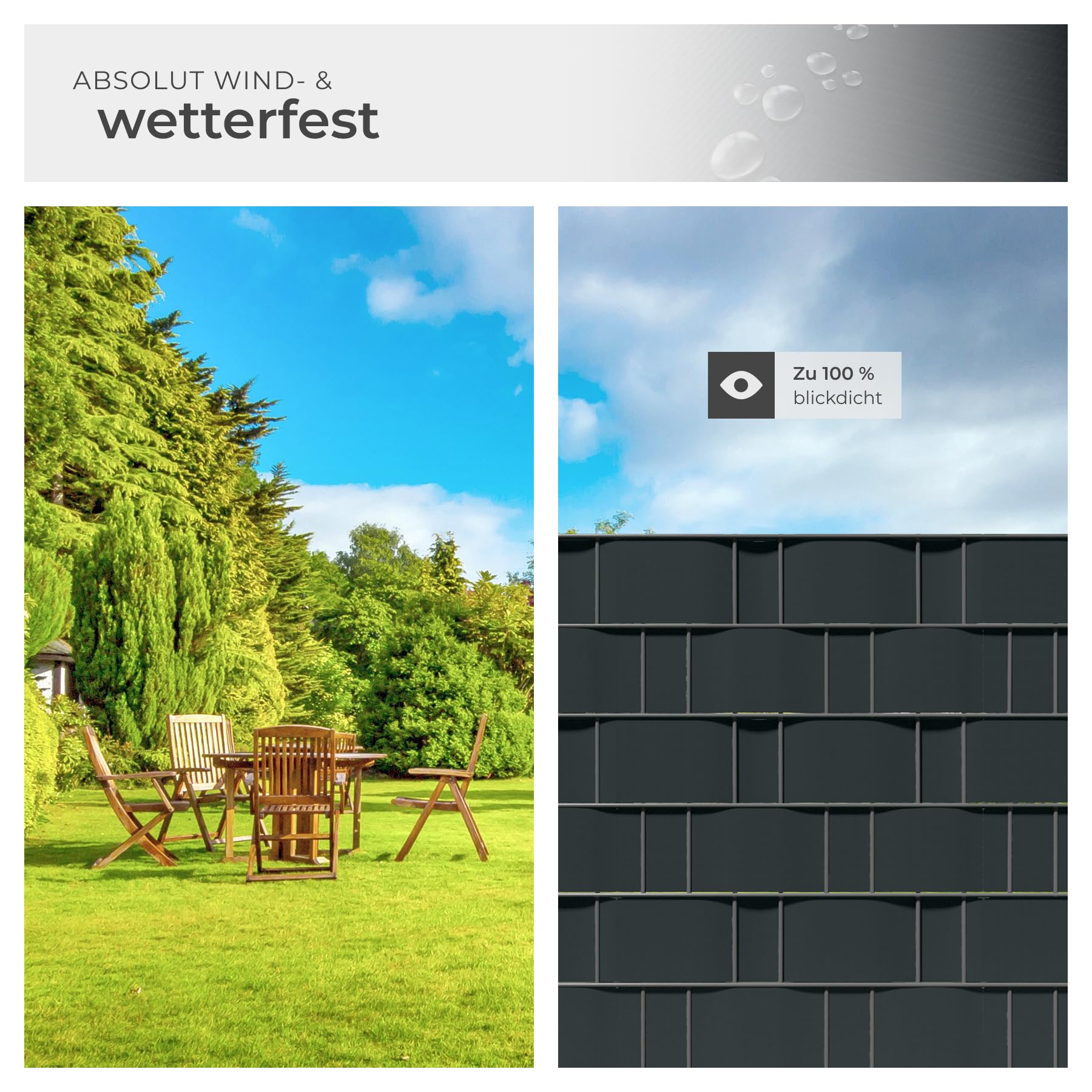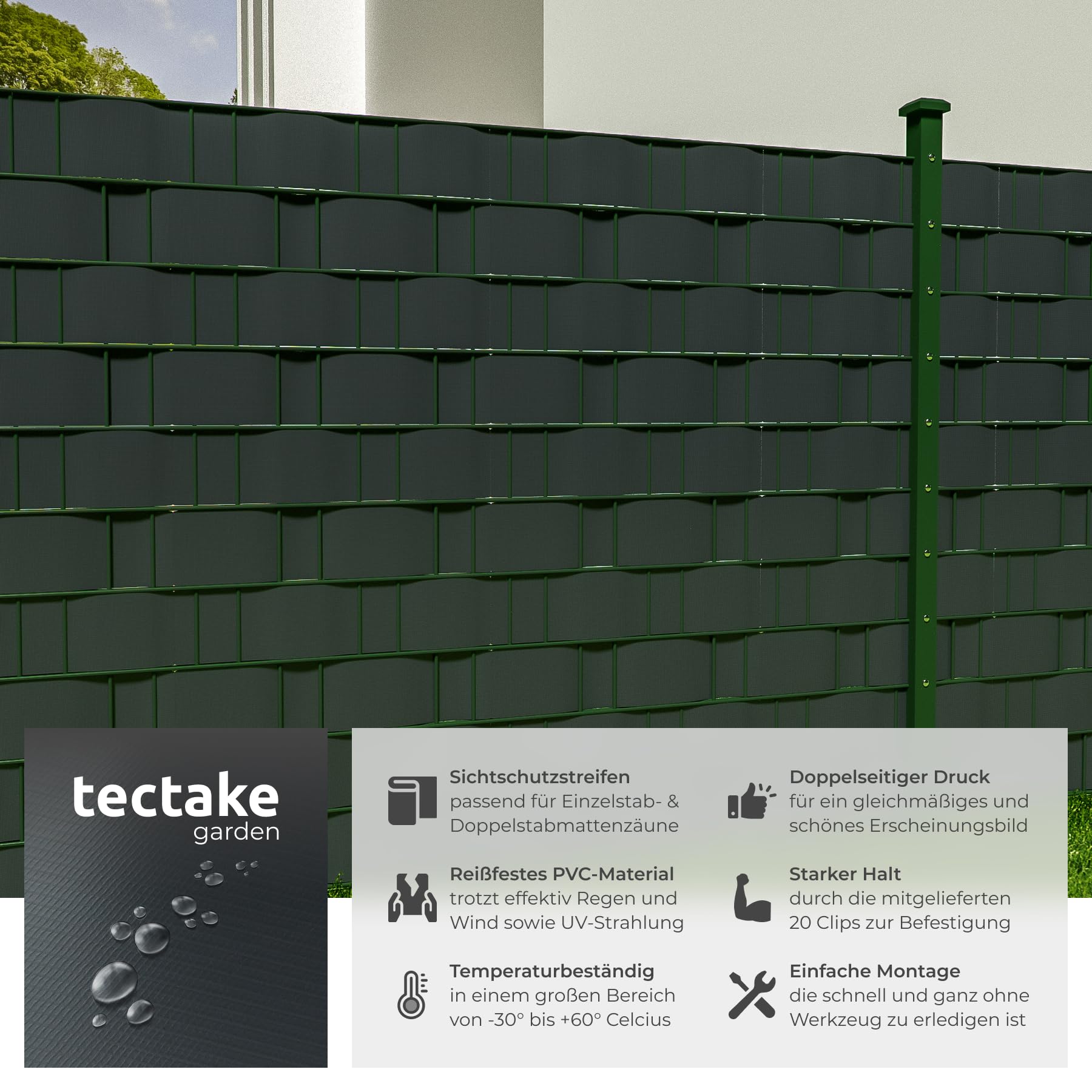 tectake® Sichtschutzfolie, Sichtschutzstreifen mit Befestigungsclips, Windschutz, Sonnenschutz, Sichtschutzmatte für Balkon, Garten, Terrasse, für Stabmattenzaun und Zaunelemente - 70 m, anthrazit